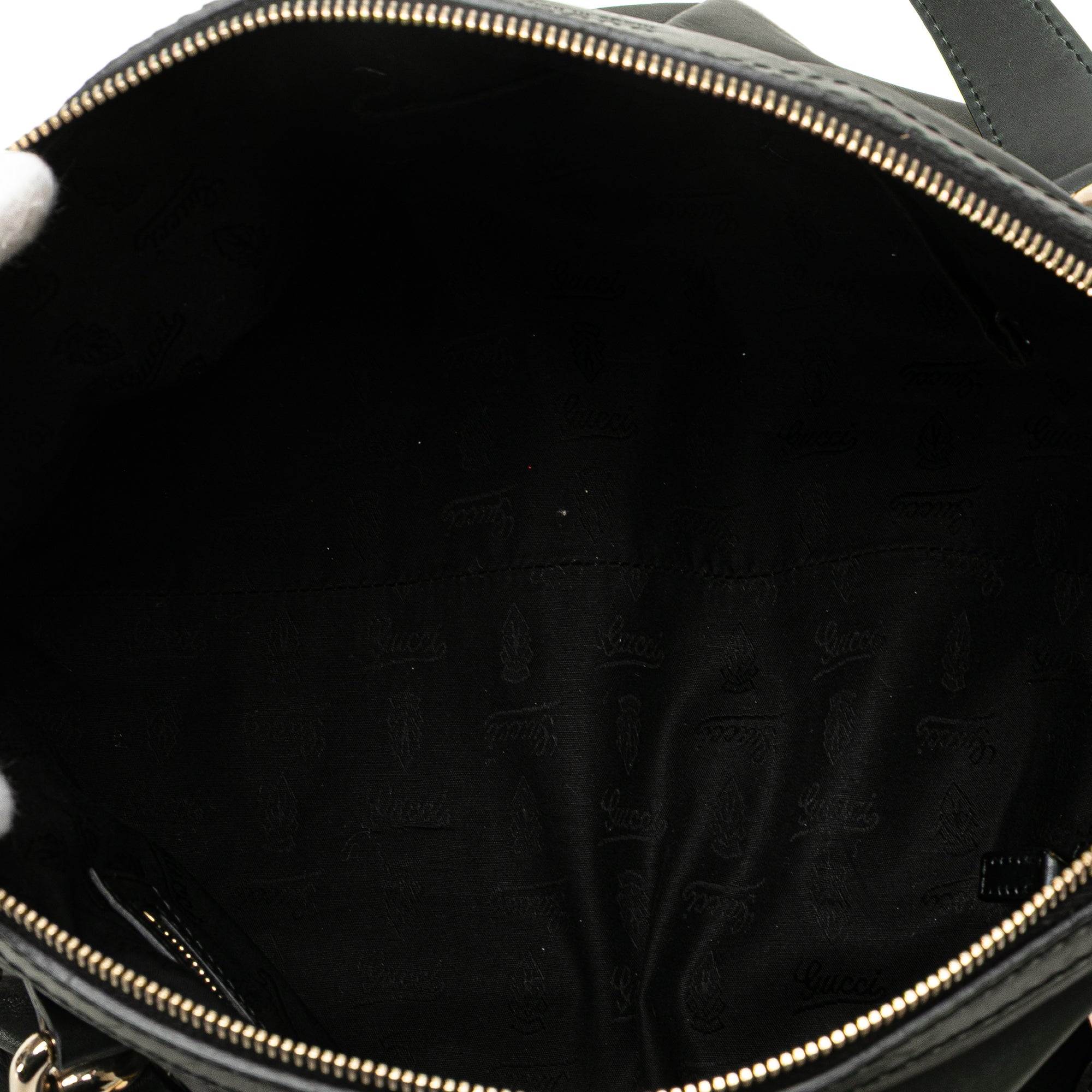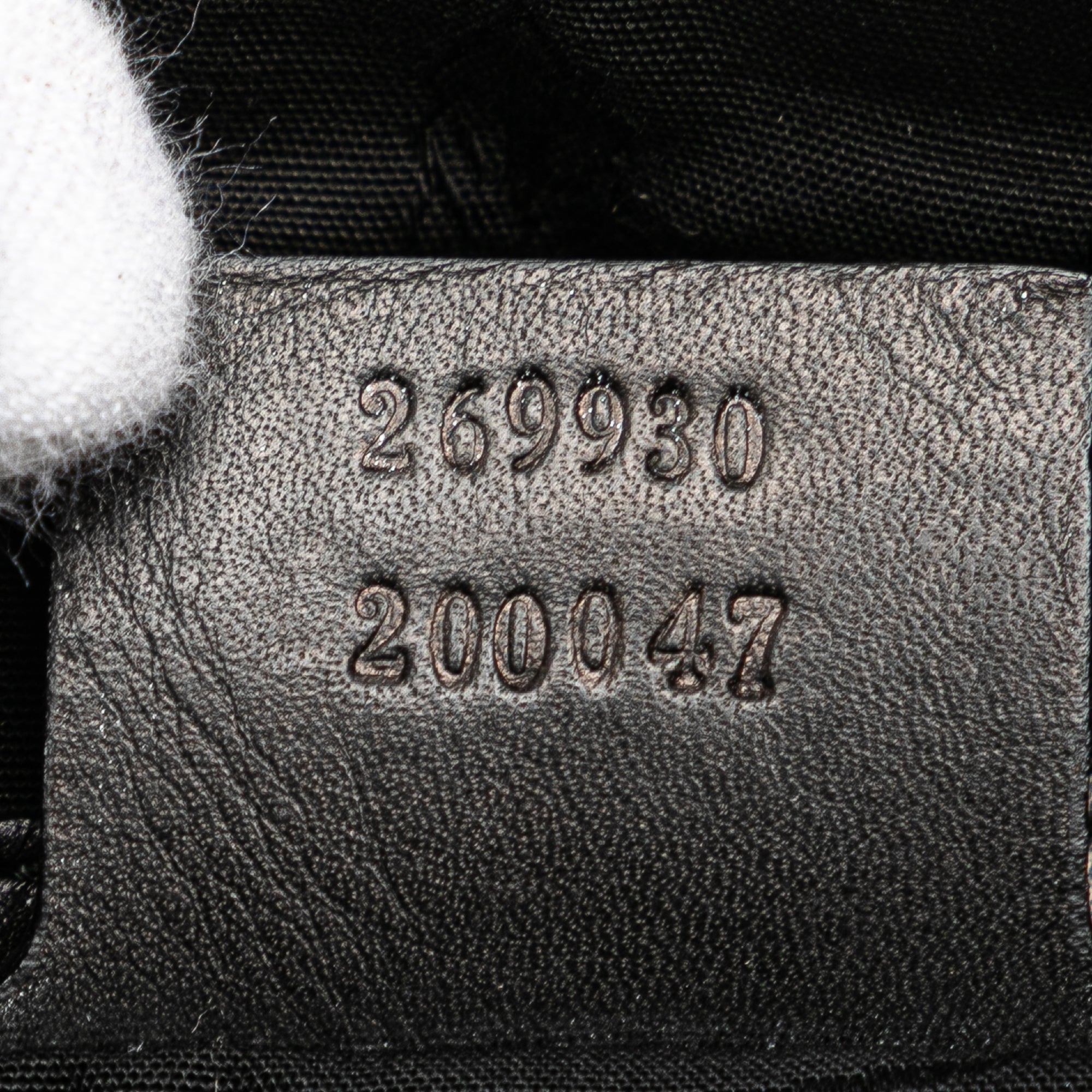 Product Details: Black Gucci Leather Bridle Satchel. This satchel features a leather body, flat leather handles, a top zip closure, and interior zip and slip pockets. 8.7" L x 13" W x 5.5" D, 6.3" drop. Serial number 269930 200047.