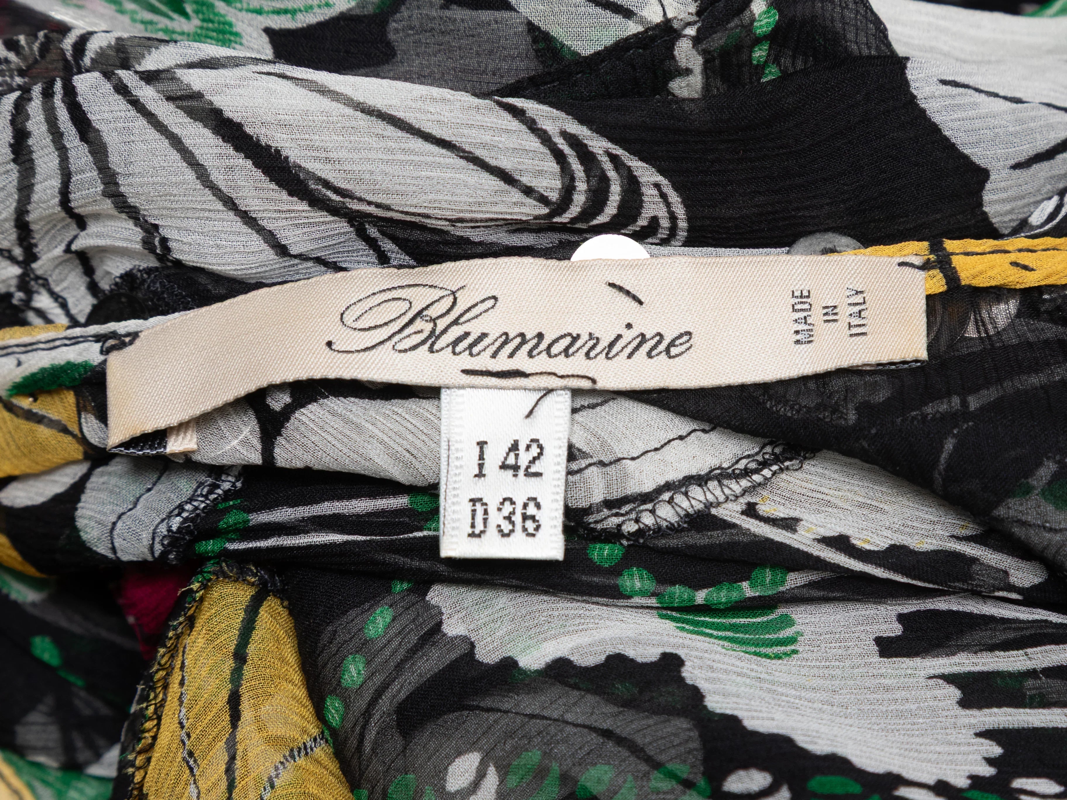 Black & Multicolor Blumarine Silk Embellished Printed Dress Size IT 42