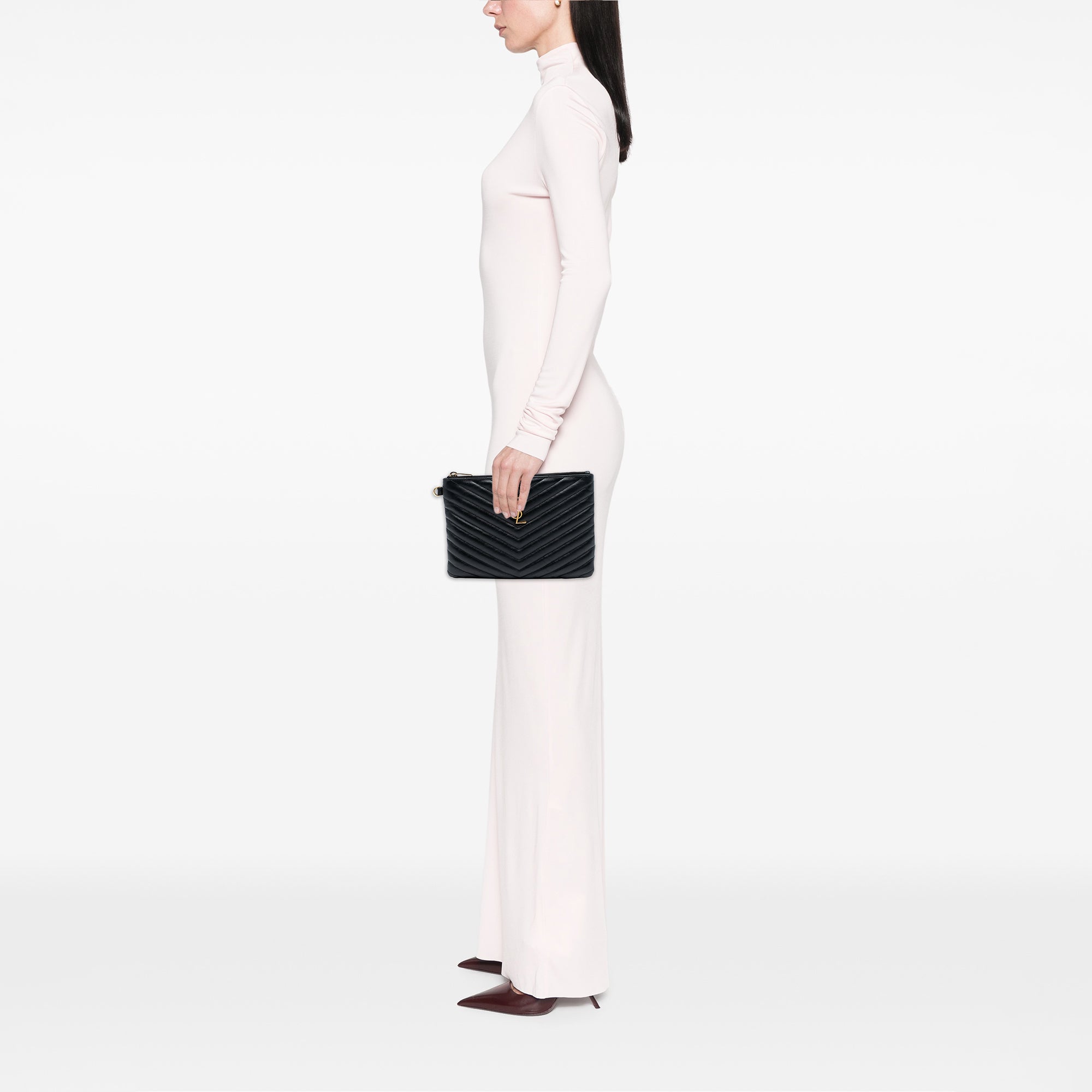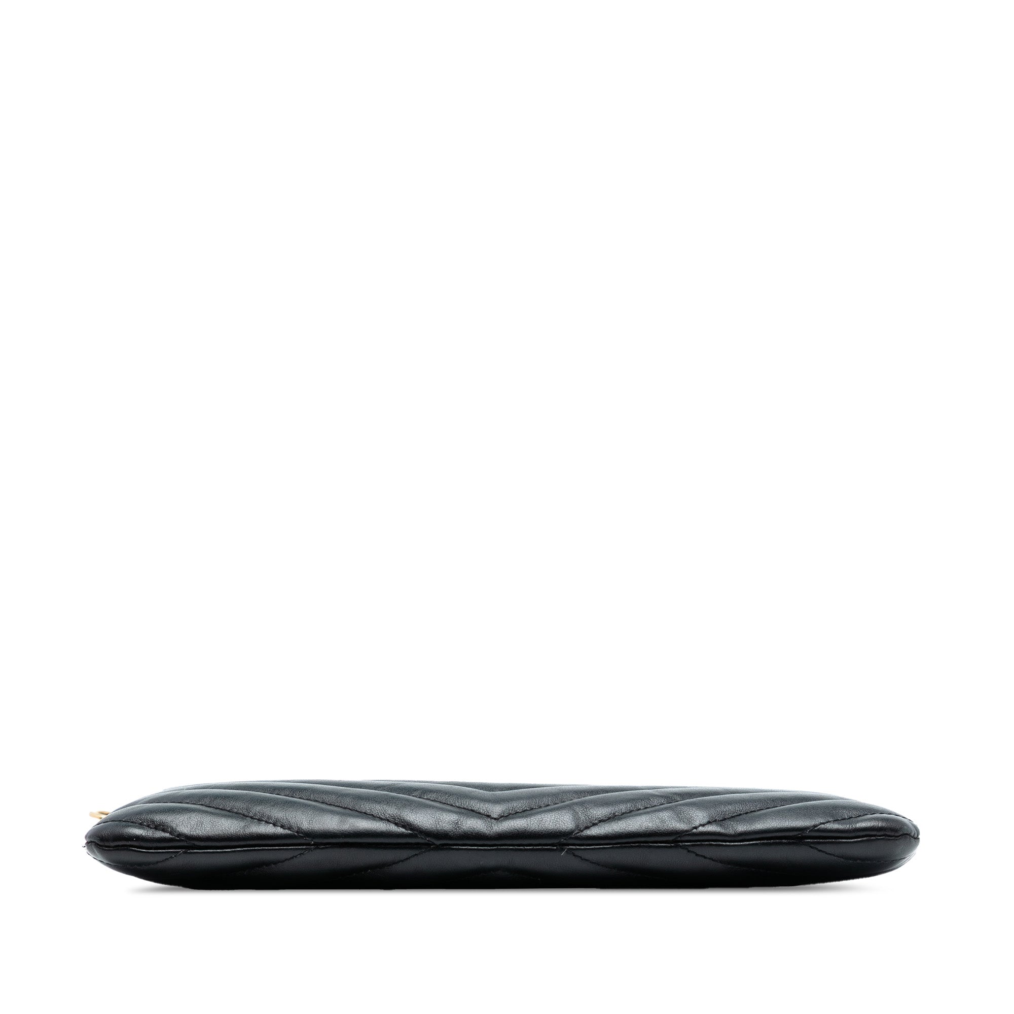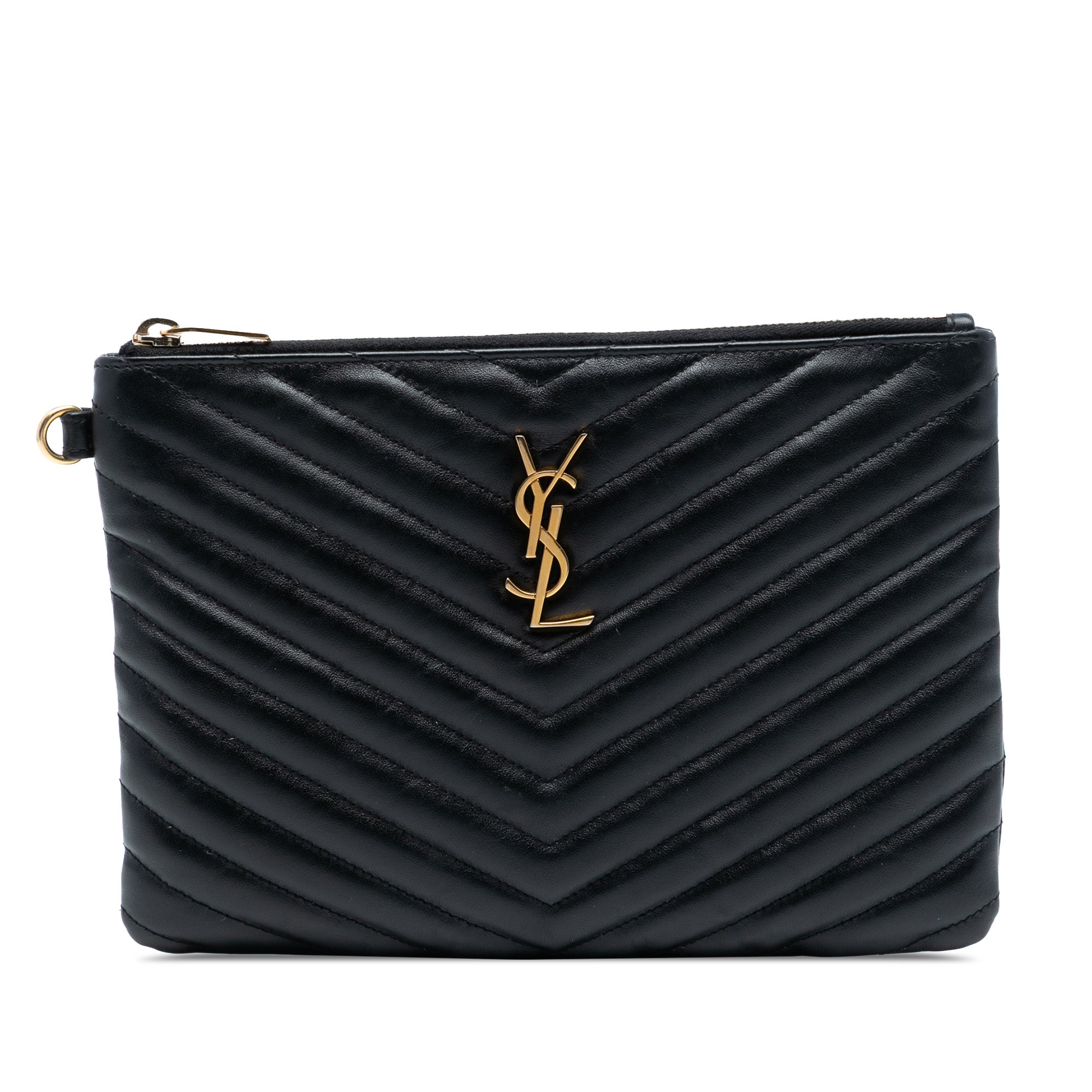 Black Saint Laurent Chevron Leather Monogram Zip A5 Wristlet Pouch Clutch Bag