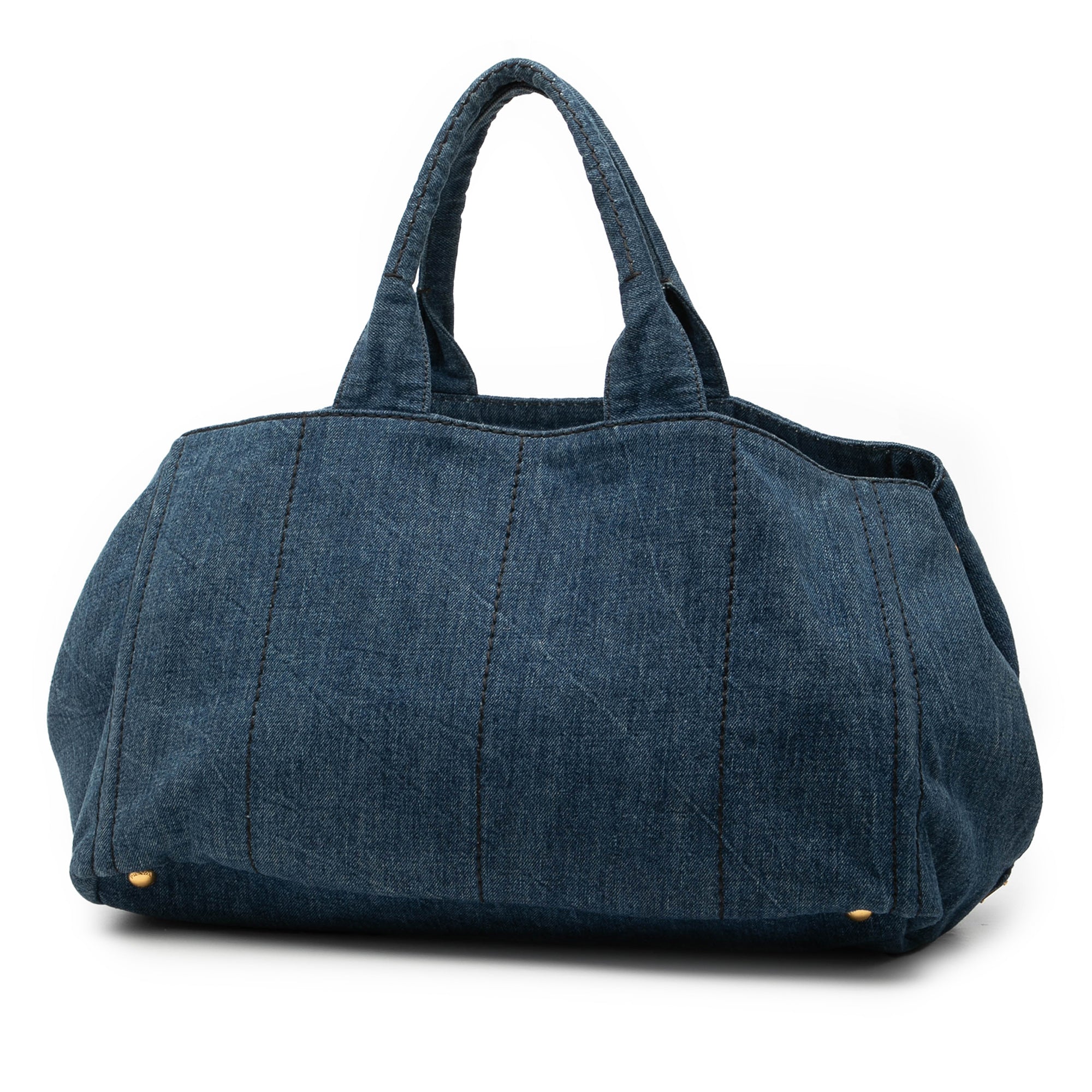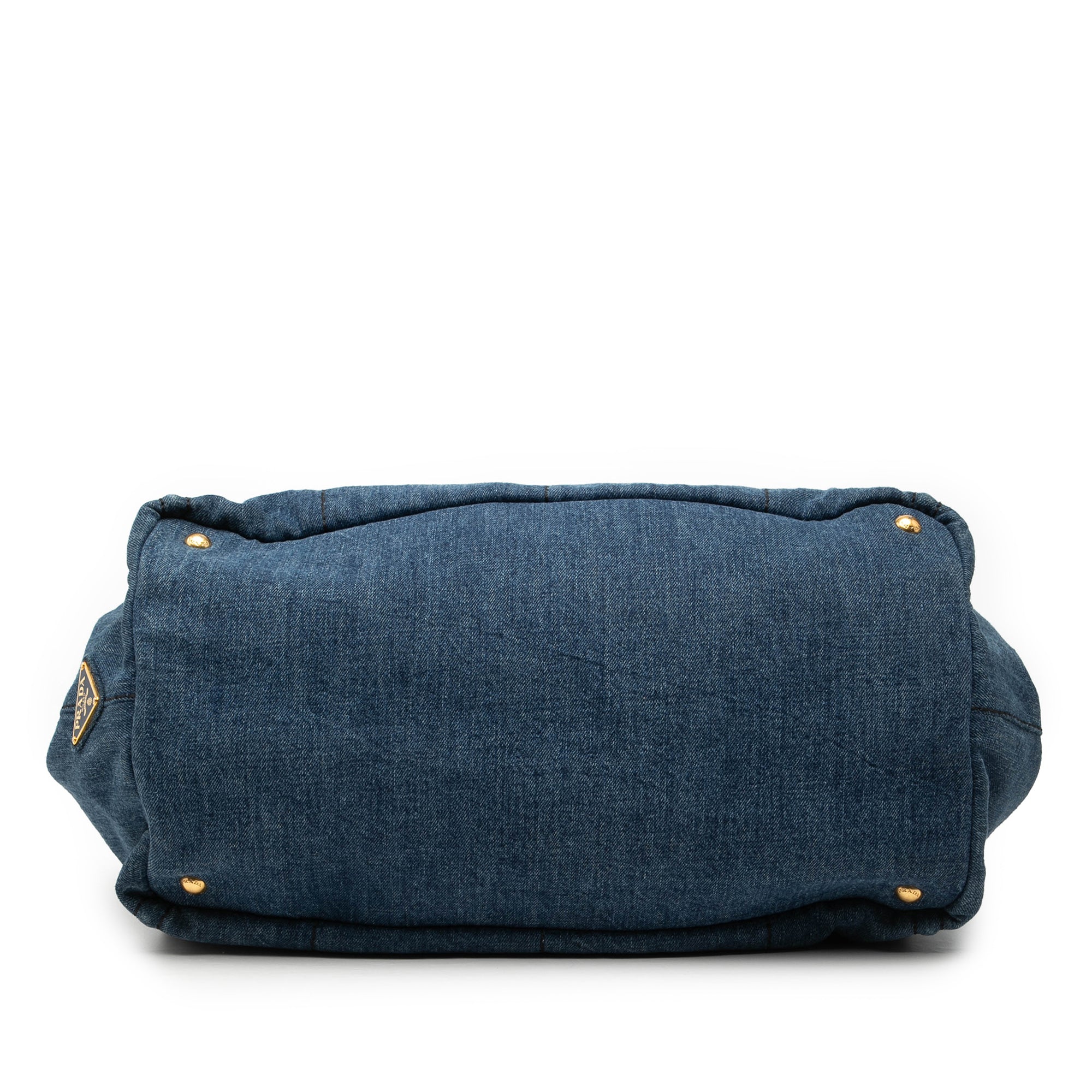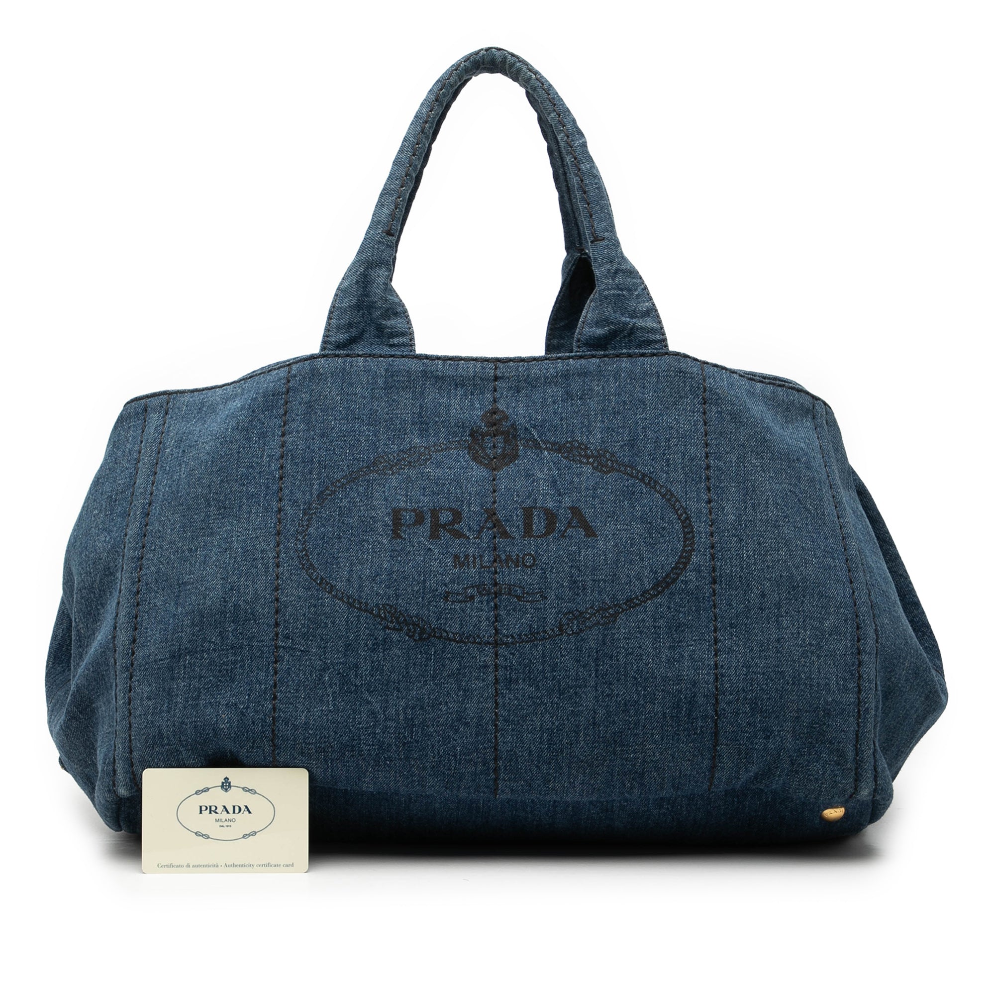 Please note this is a pre-owned item that may display signs of wear consistent with the condition listed above and shown in photos. Designer Revival guarantees this is an authentic Blue Prada Large Denim Canapa Logo Satchel or 100% of your money back. Learn more about our authentication process.