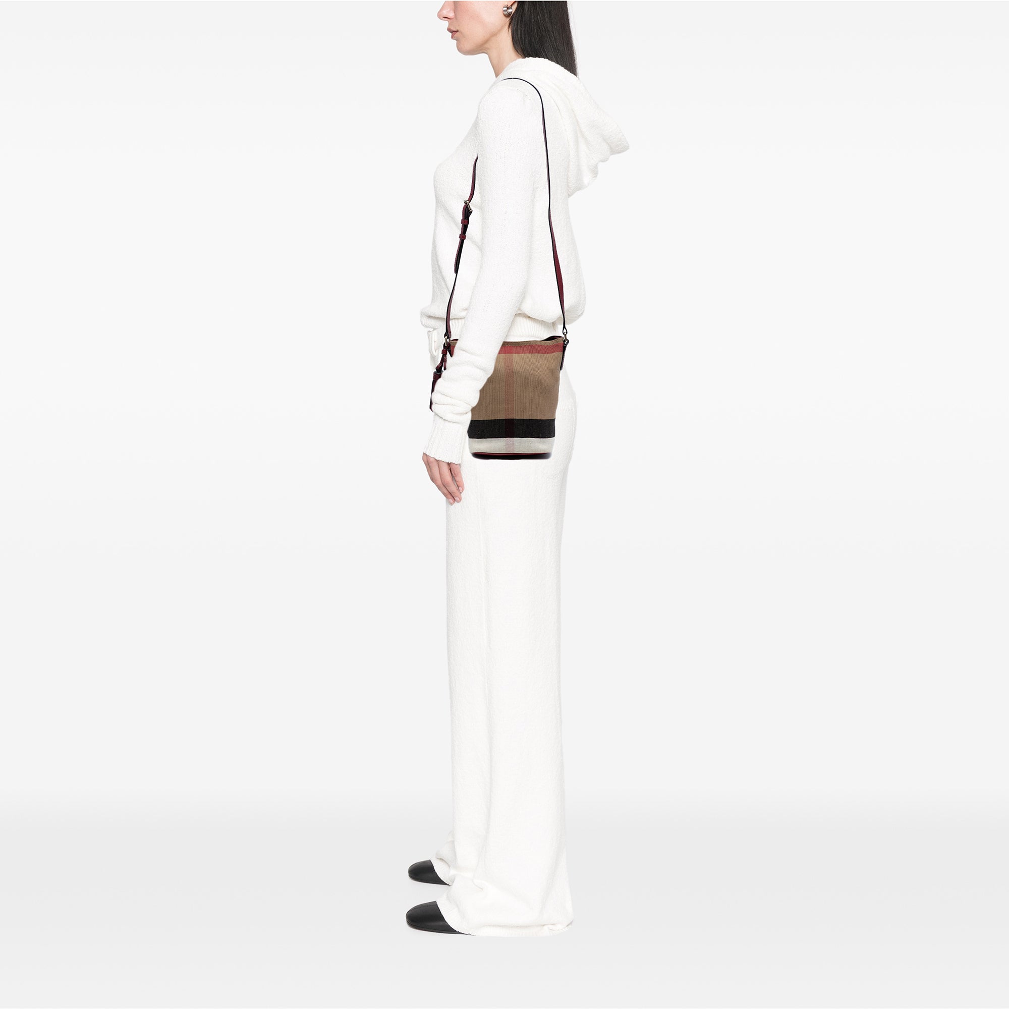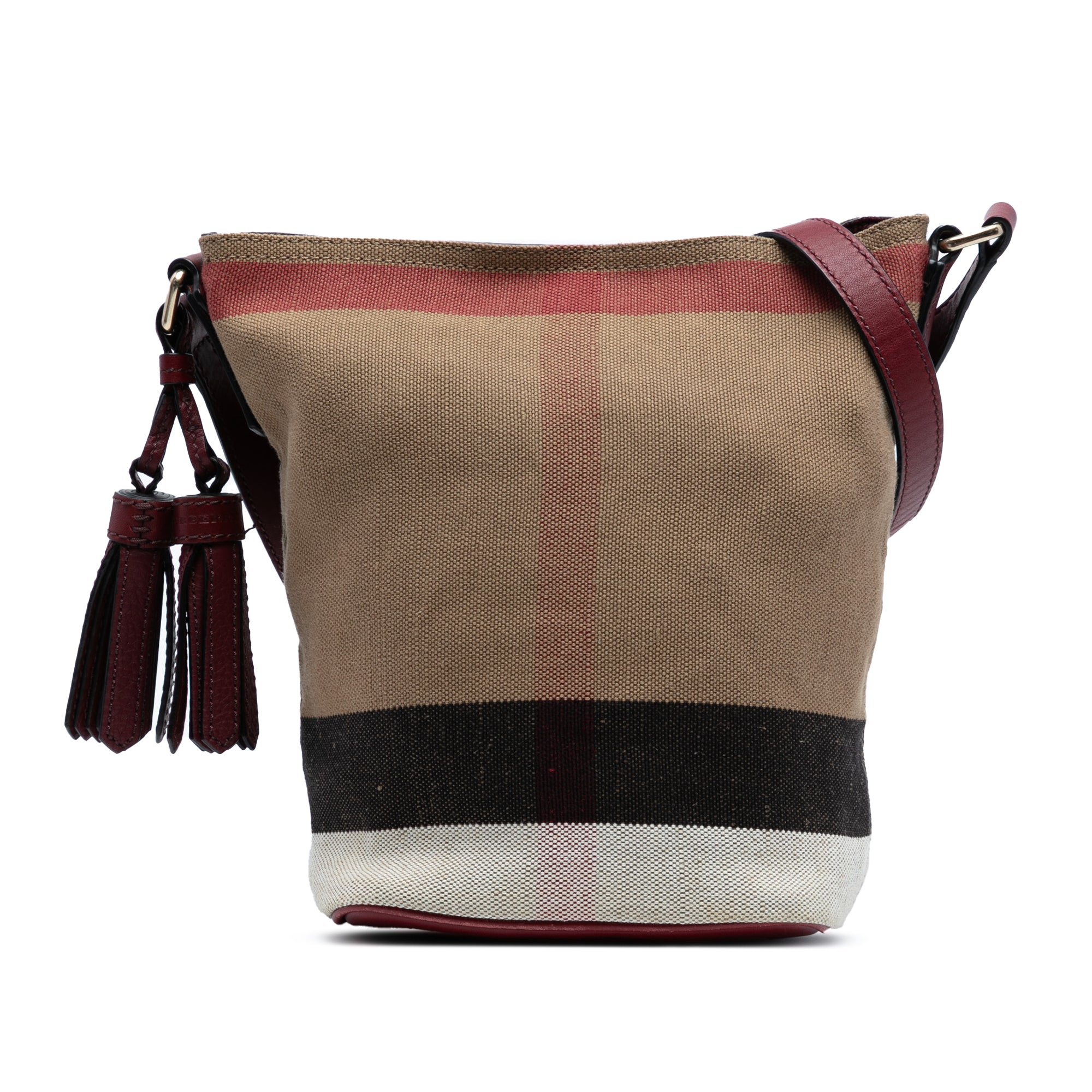 Brown Burberry Mini Mega Check Canvas Ashby Tassel Bucket Bag