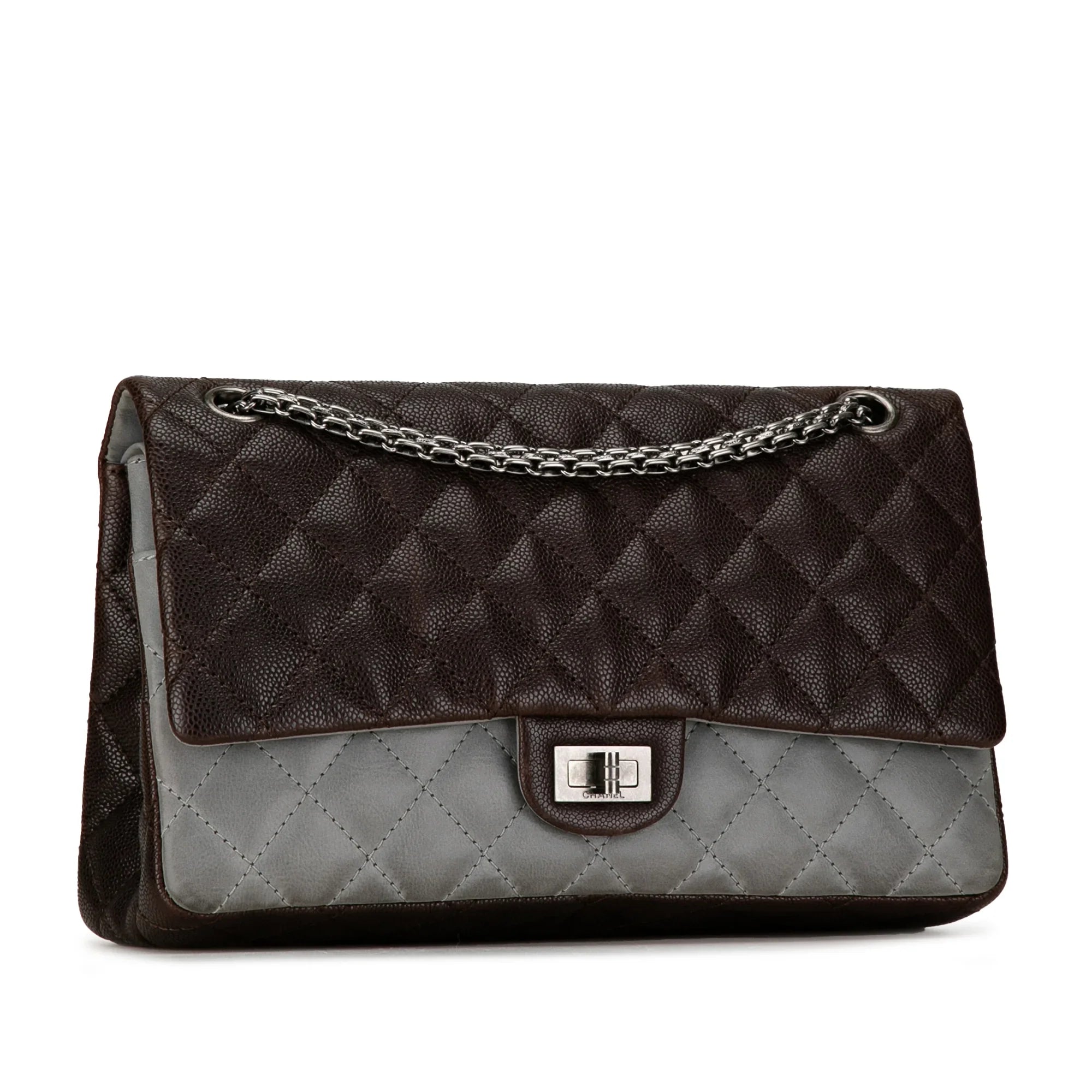 Brown Chanel Caviar and Iridescent Calfskin Reissue 2.55 Double Flap 226 Shoulder Bag