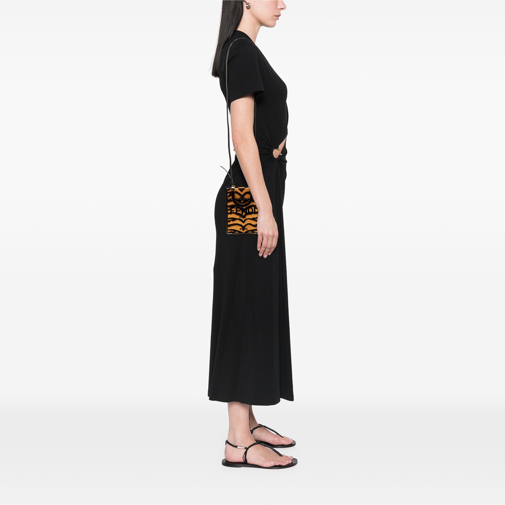 Brown Fendi Mini Embroidered Canvas Tiger Print Sunshine Shopper Tote Satchel