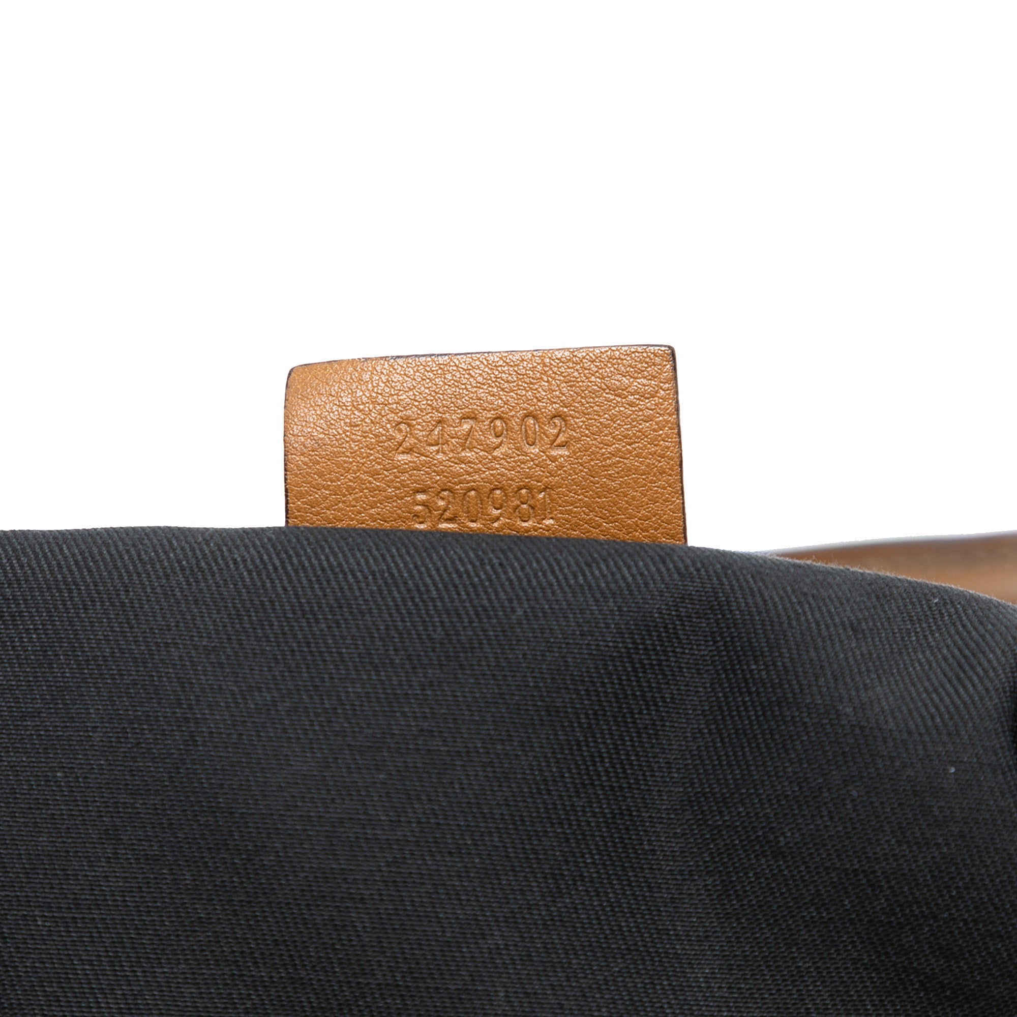 Product Details: Beige Gucci Diamante Canvas Sukey Satchel. The Sukey features a canvas body with leather trim, rolled leather handles, a top zip closure, and an interior zip pocket. 9.8" L x 11.4" W x 5.1" D, 5.9" drop. Serial number 247902 520981.