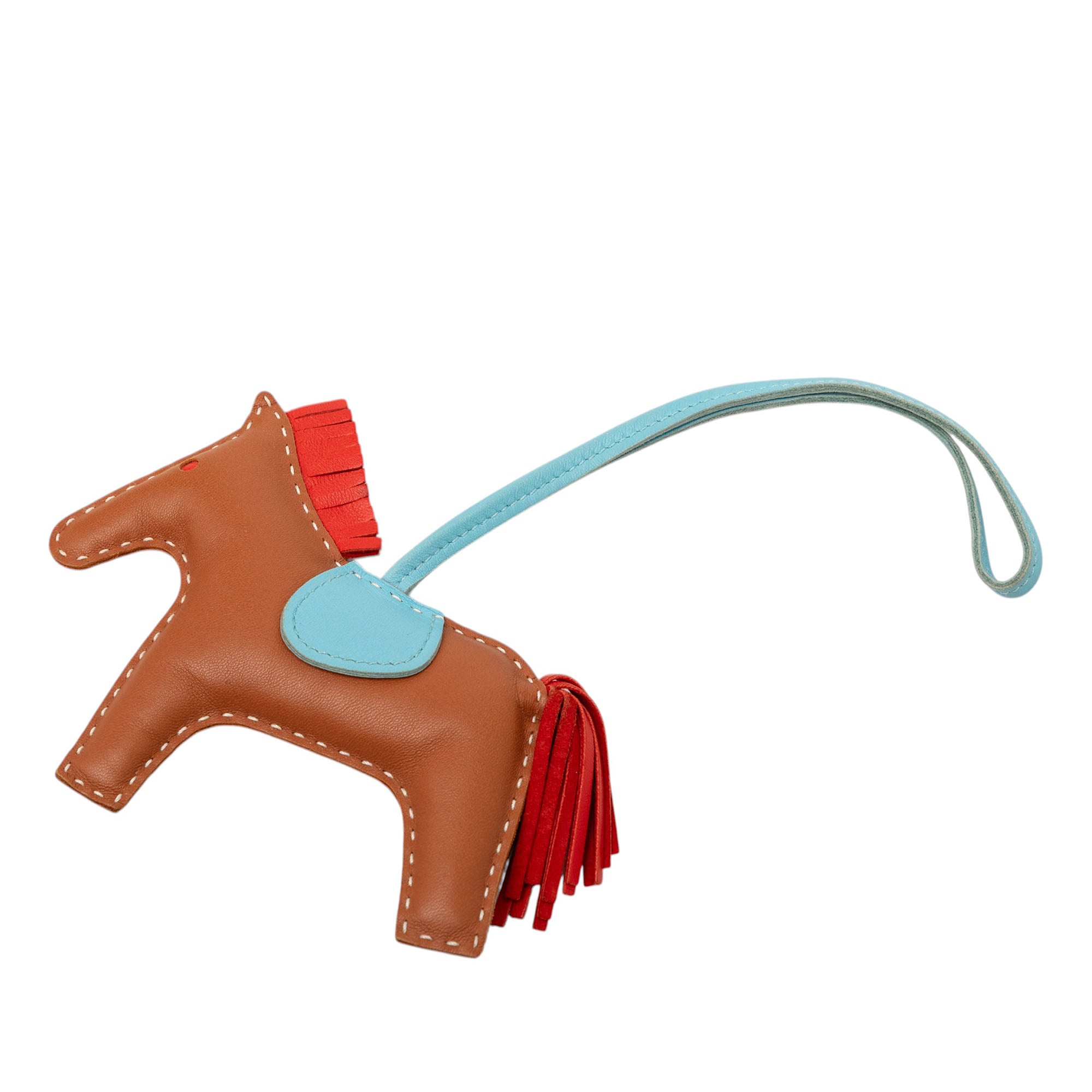 Product Details: Brown Hermès Milo Lambskin Grigri Rodeo Pegase Bag Charm MM Key Chain. The Rodeo Pegase bag charm features a Milo lambskin leather body, and a flat leather strap. 4.3" L x 4.9" W x 0" D. Serial number D.