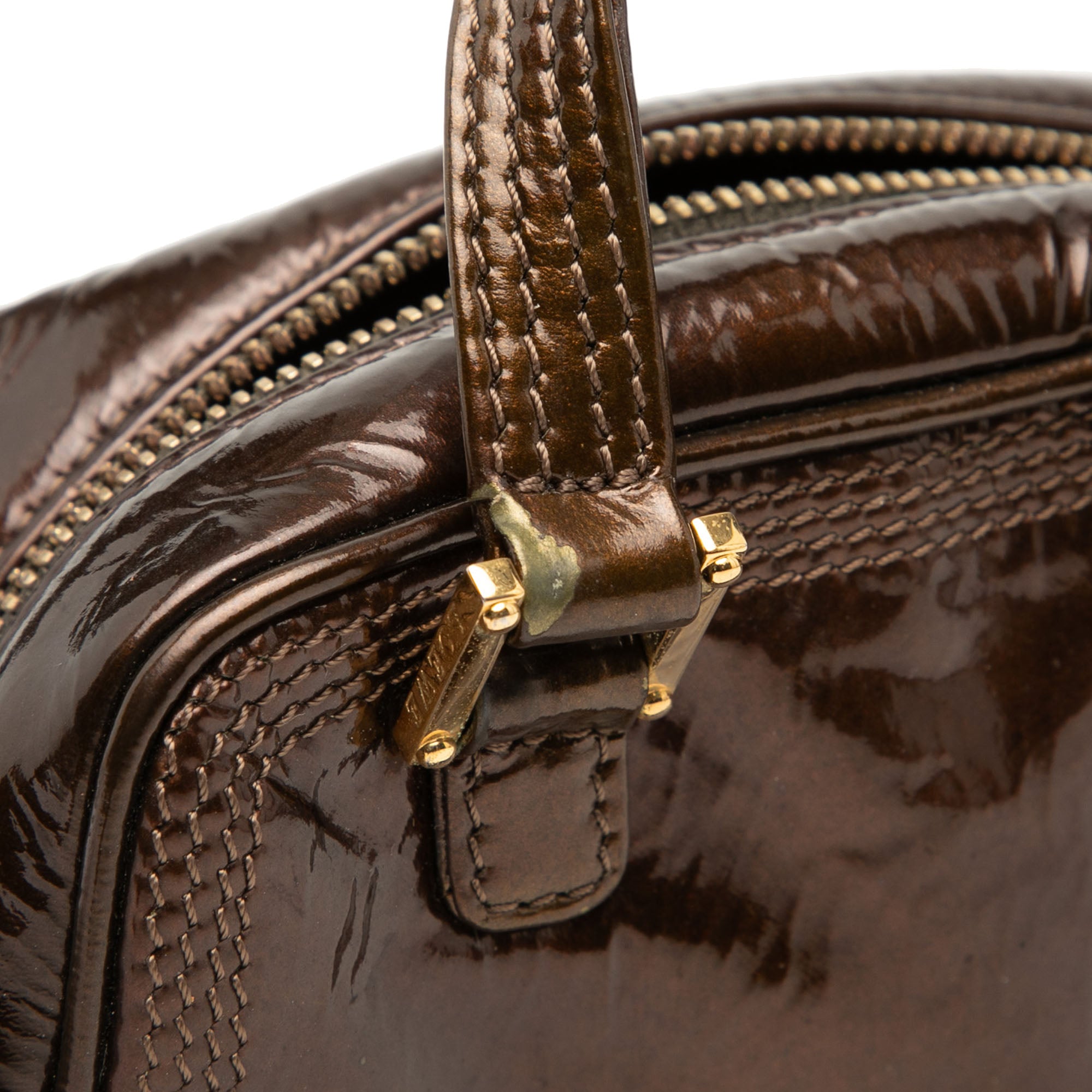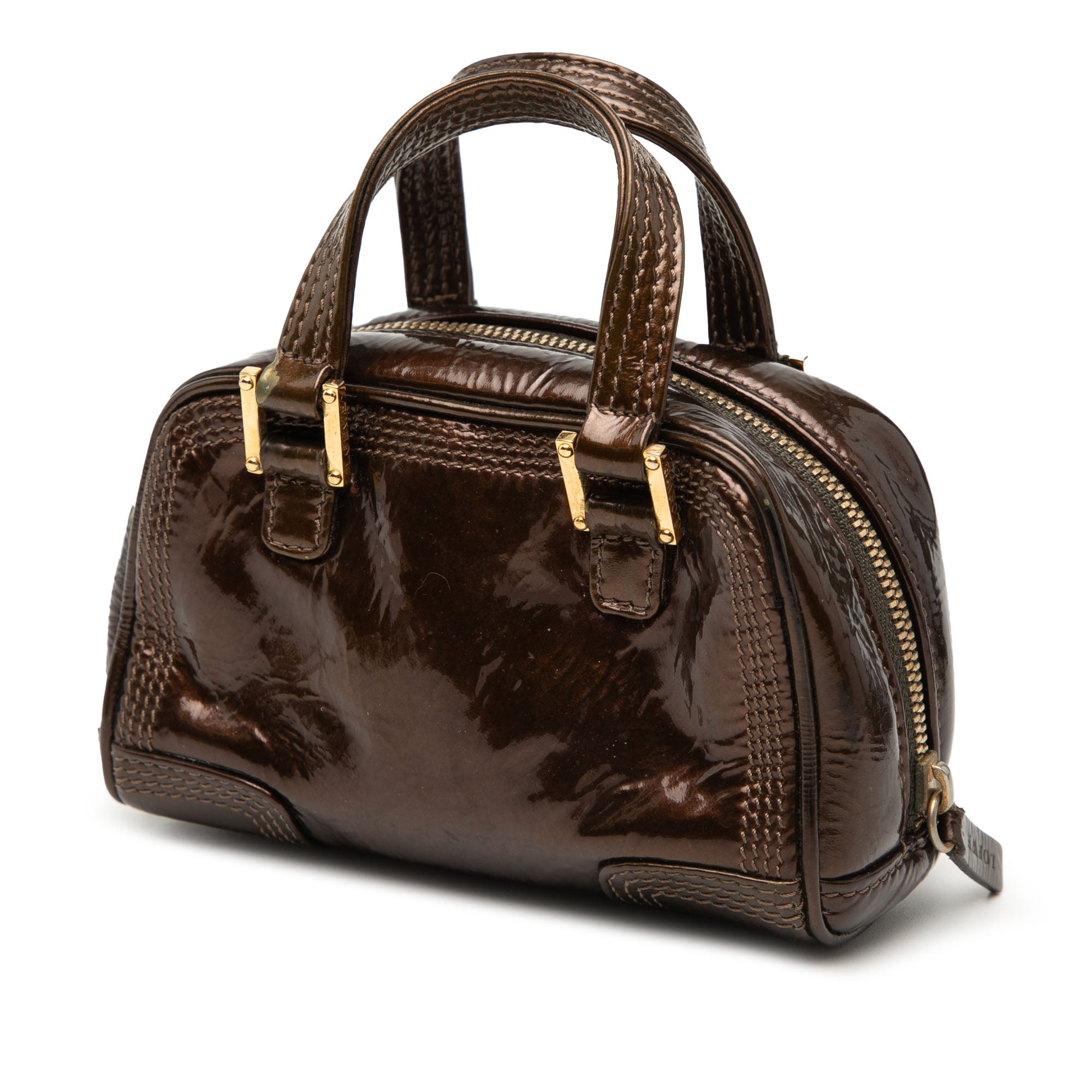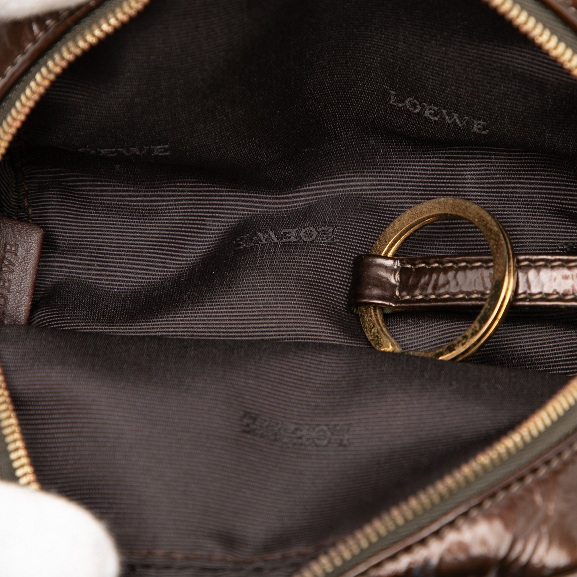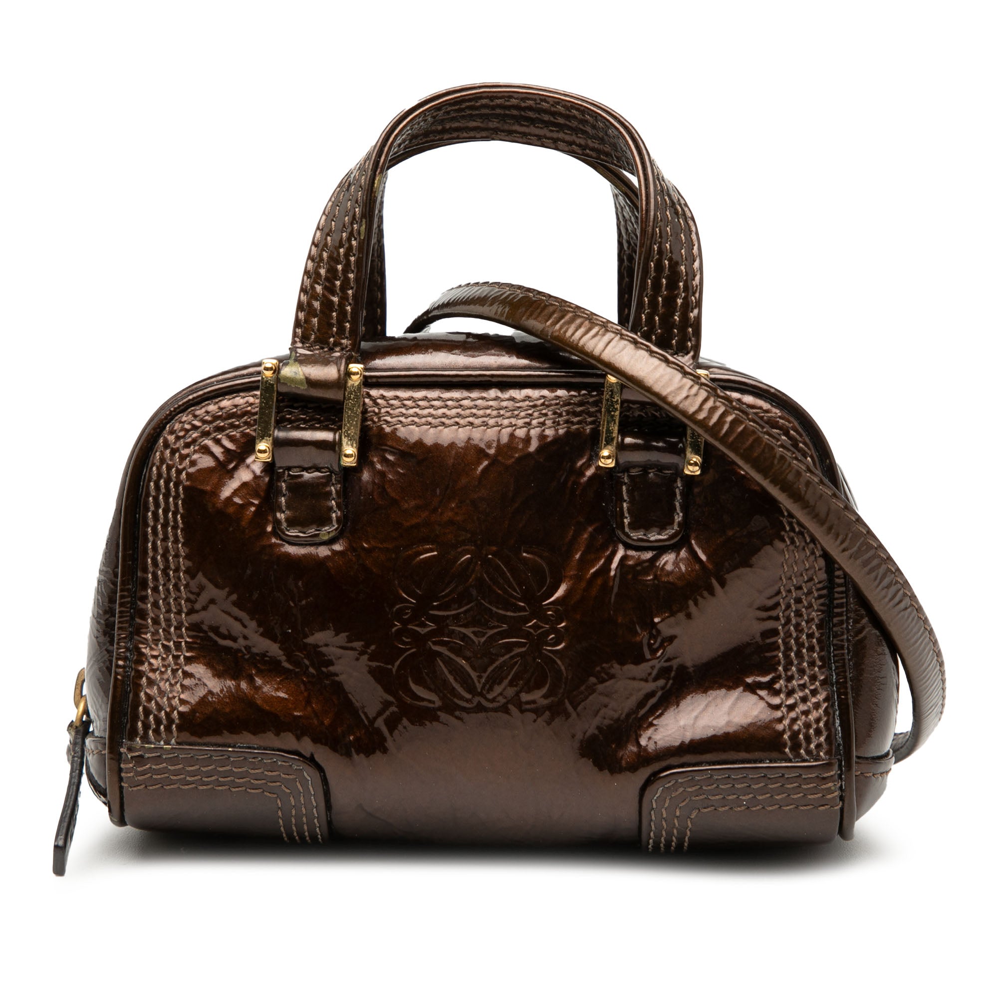 Please note this is a pre-owned item that may display signs of wear consistent with the condition listed above and shown in photos. Designer Revival guarantees this is an authentic Brown LOEWE Micro Patent Amazona Satchel or 100% of your money back. Learn more about our authentication process.