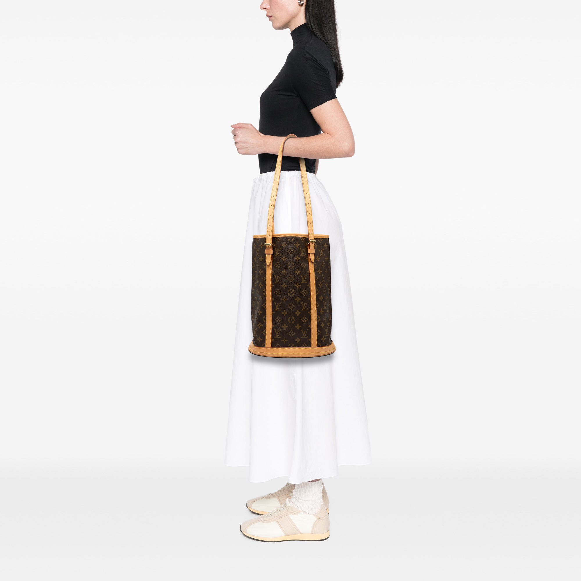 Please note this is a pre-owned item that may display signs of wear consistent with the condition listed above and shown in photos. Designer Revival guarantees this is an authentic Brown Louis Vuitton Monogram Bucket GM or 100% of your money back. Learn more about our authentication process.