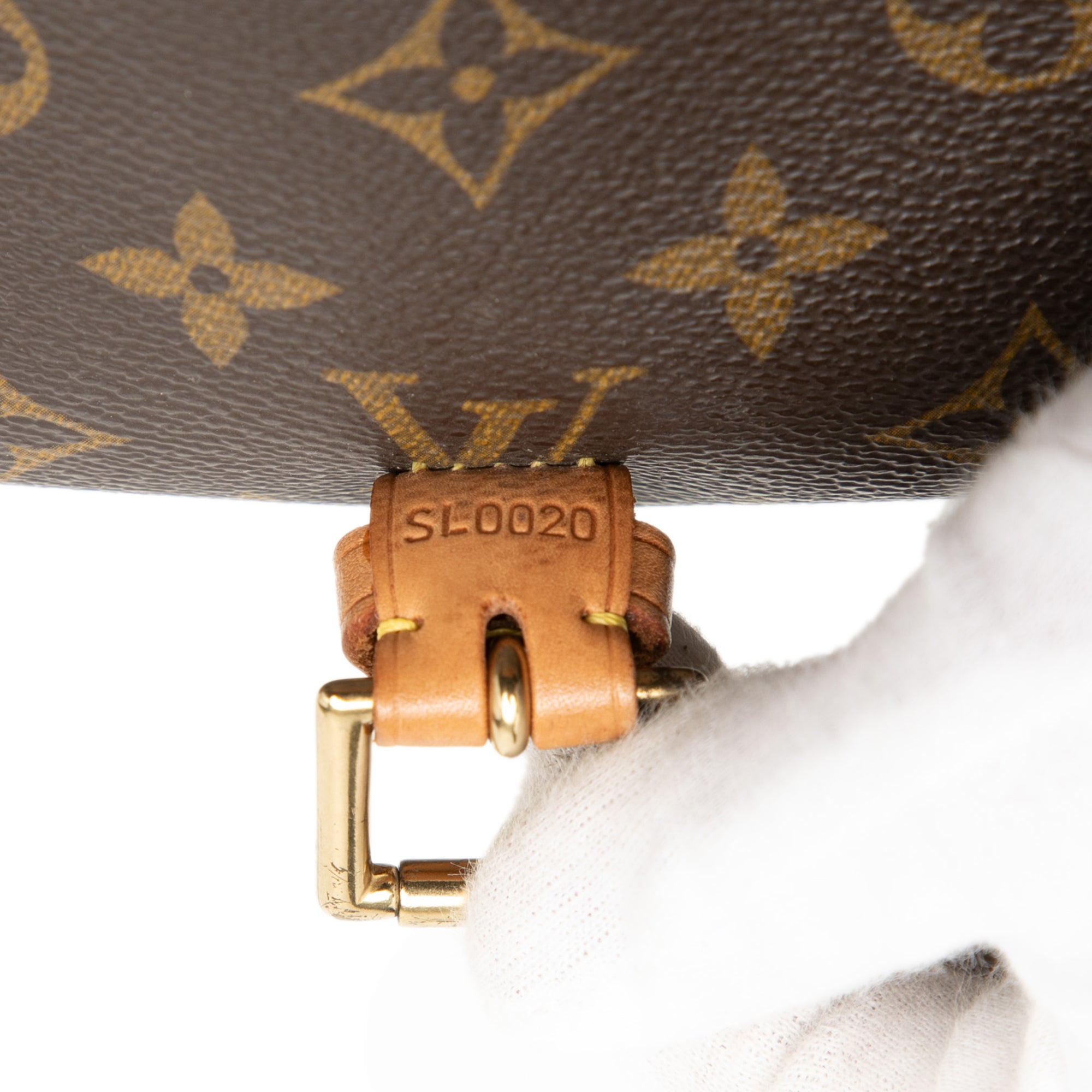 Product Details: Brown Louis Vuitton Monogram Sologne Crossbody Bag. The Sologne features the Monogram canvas body, an adjustable flat vachetta strap with a vachetta shoulder pad, a front flap secured by a belt and buckle closure, exterior front and back pockets, and an interior zip pocket. 6.7" L x 10.6" W x 3.1" D. Serial number SL0020.