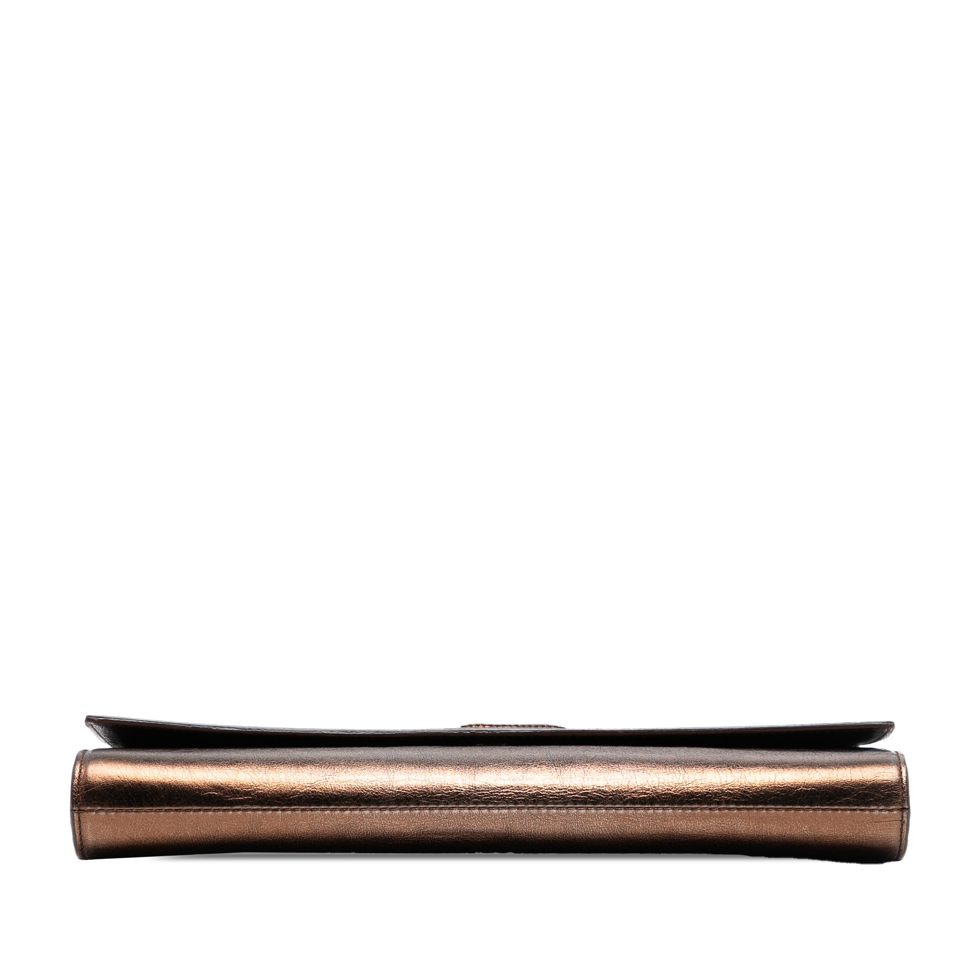 Brown Saint Laurent Large Metallic Leather Belle de Jour Clutch