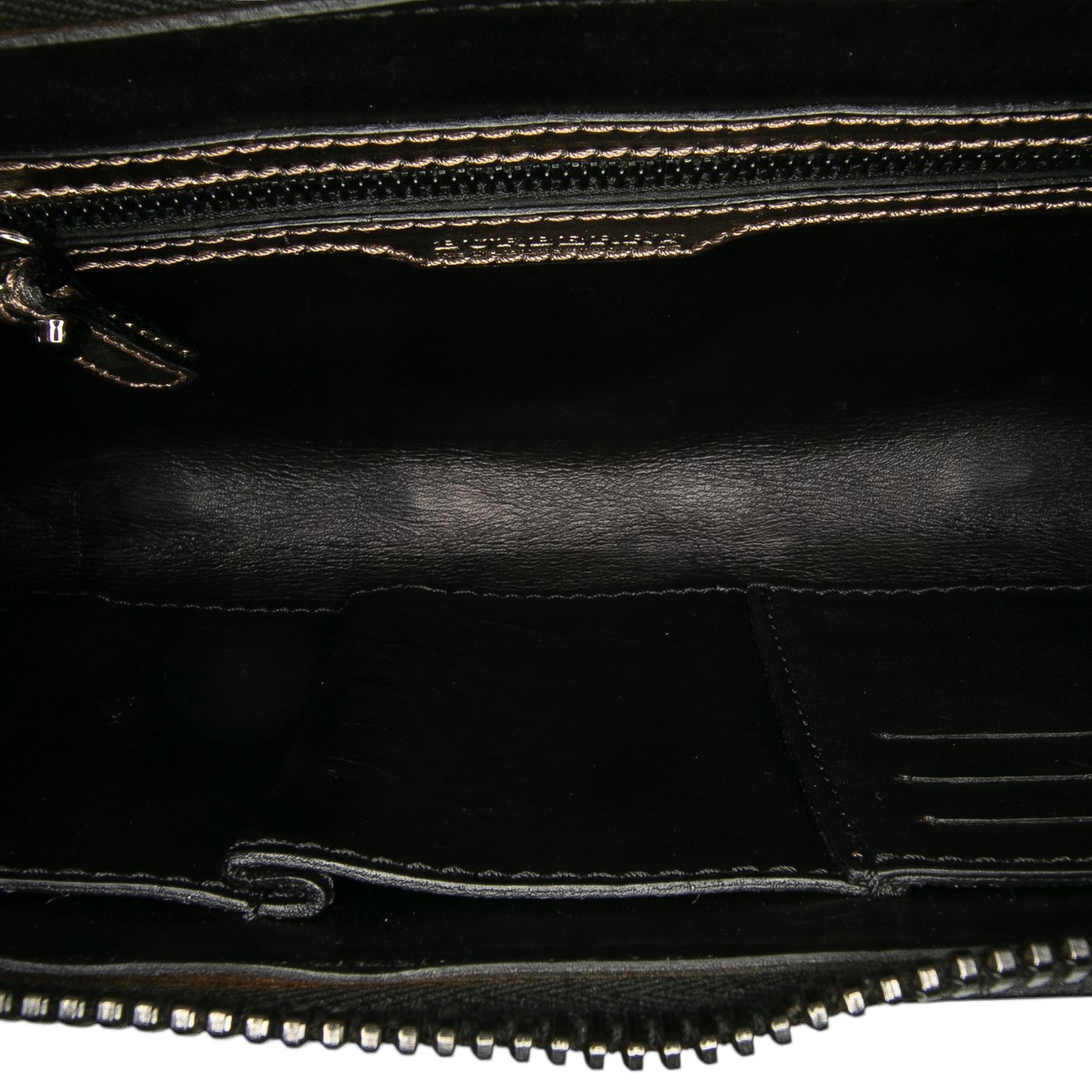 Product Details: Gold Burberry Metallic Leather Clutch. This clutch features a metallic leather body, a zip around closure, and interior zip and slip pockets. 4.5" L x 11" W x 1" D. Serial number ITPELGIG21PRA.