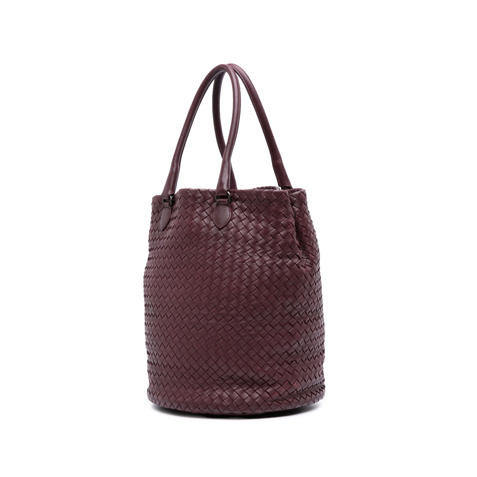 Please note this is a pre-owned item that may display signs of wear consistent with the condition listed above and shown in photos. Designer Revival guarantees this is an authentic Grape Bottega Veneta Nappa Intrecciato Bucket Bag or 100% of your money back. Learn more about our authentication process.