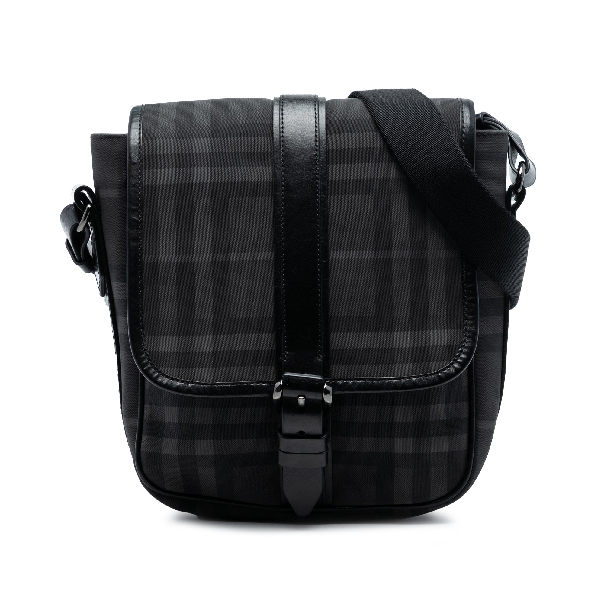 Gray Burberry Smoke Check Coated Canvas Crossbody