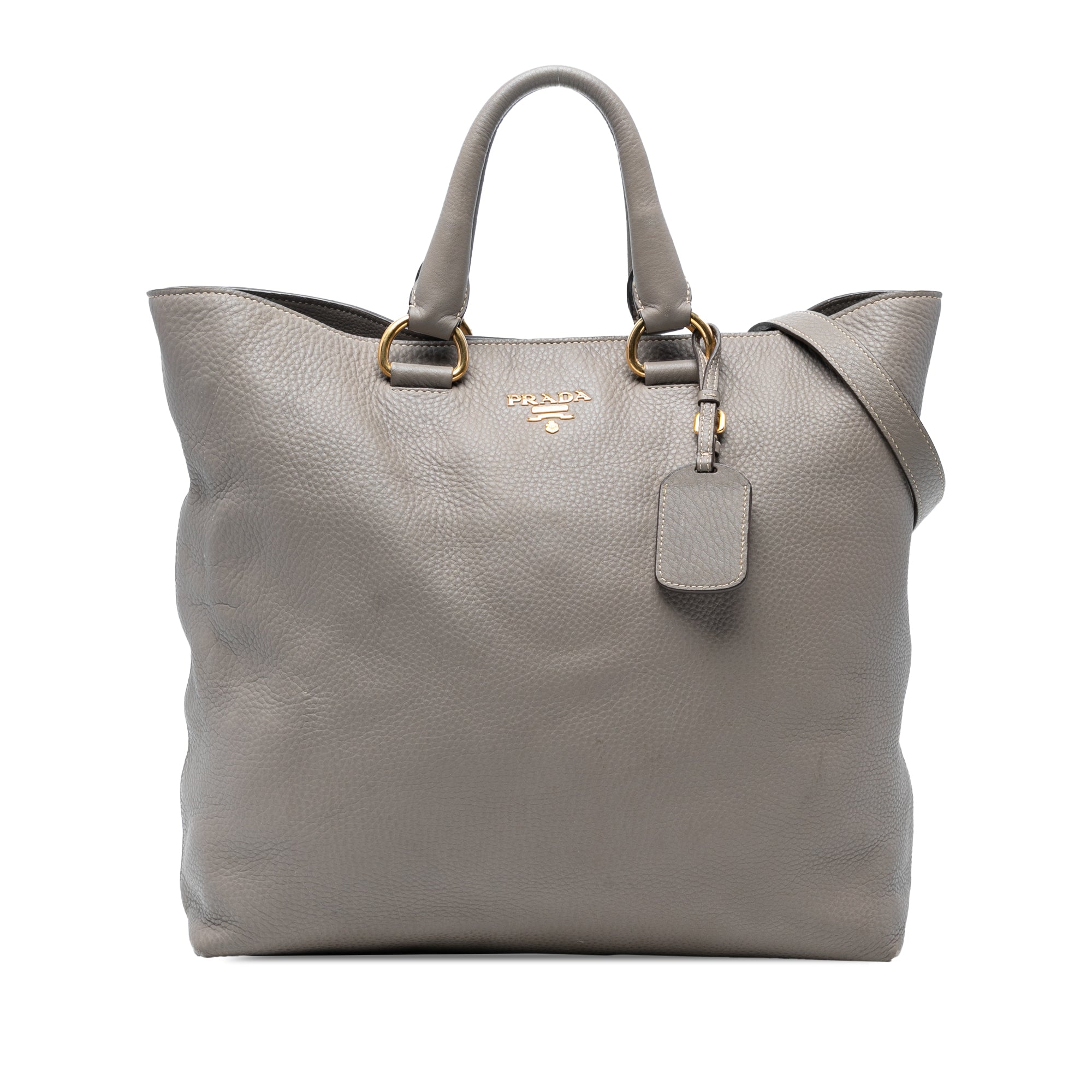 Gray Prada Vitello Daino Open Convertible Tote Satchel