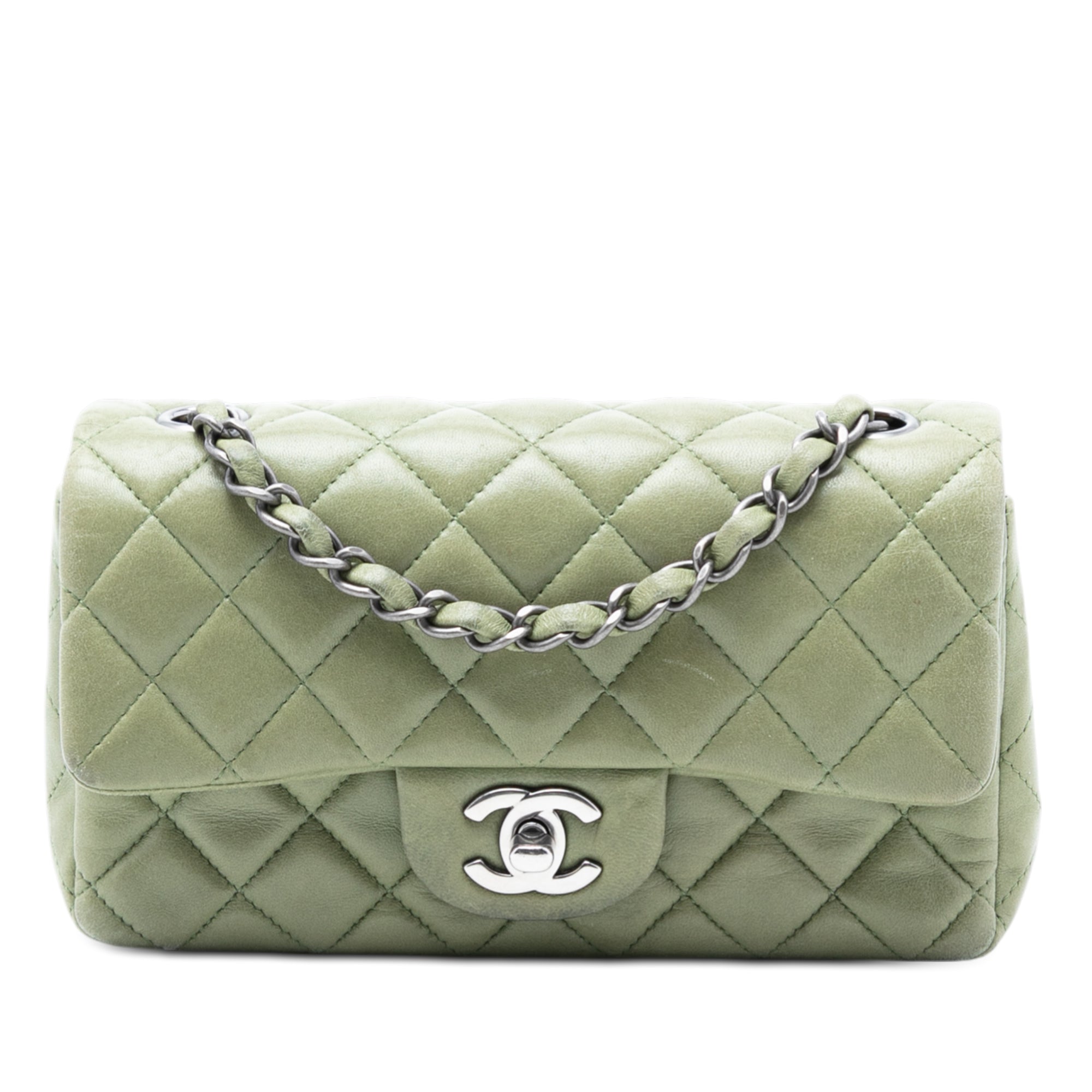 Green Chanel Mini Rectangular Classic Lambskin Single Flap Crossbody Bag
