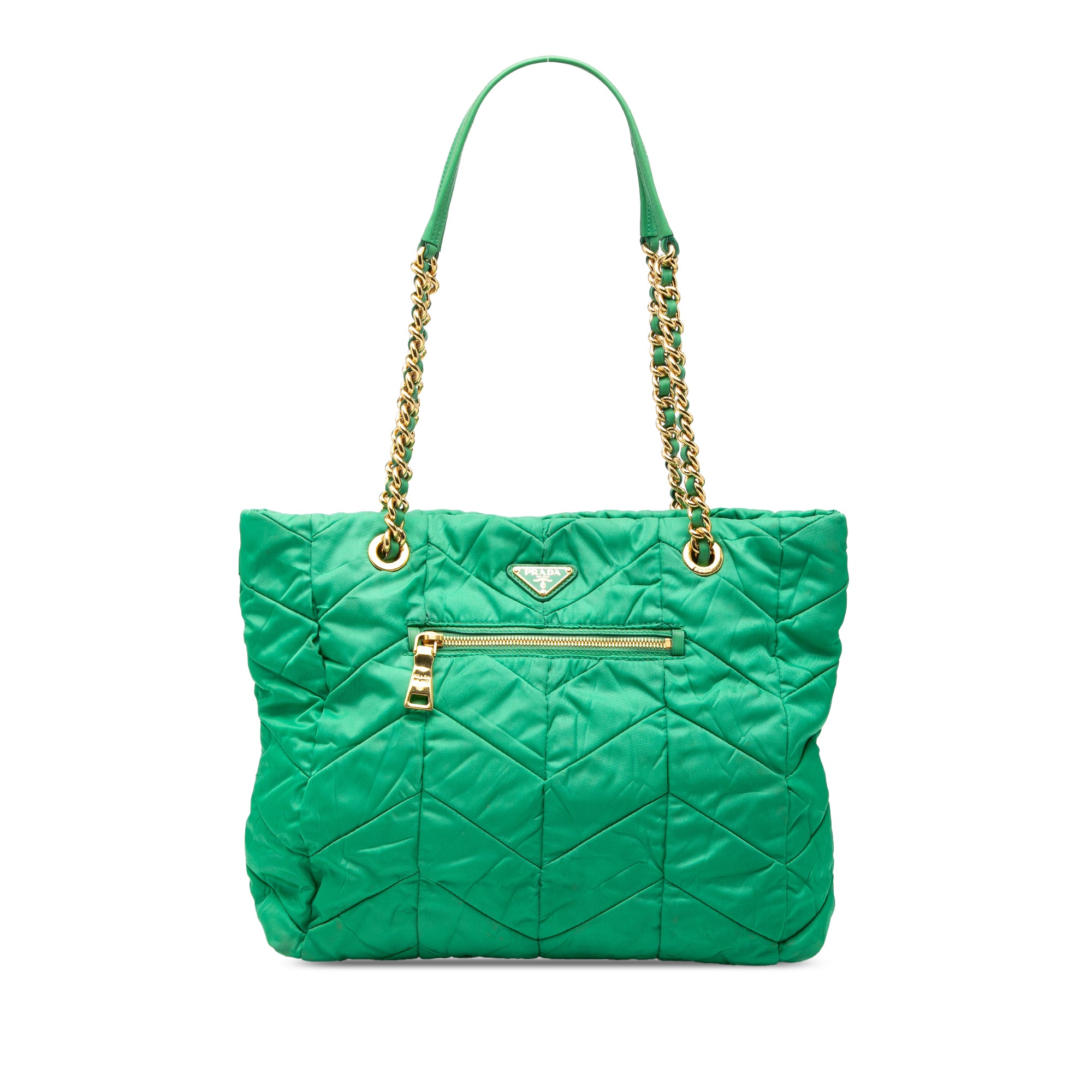 Please note this is a pre-owned item that may display signs of wear consistent with the condition listed above and shown in photos. Designer Revival guarantees this is an authentic Green Prada Impuntu Tessuto Chain Tote or 100% of your money back. Learn more about our authentication process.