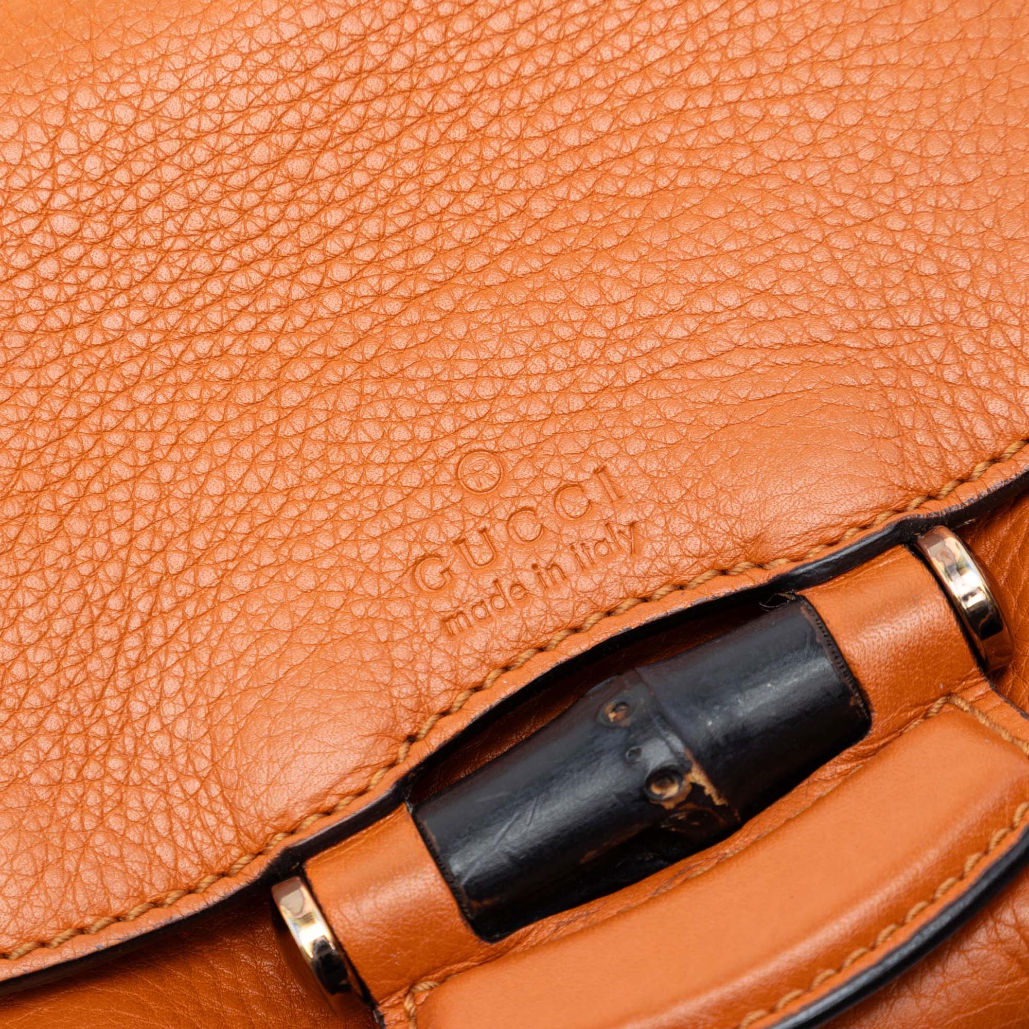 Please note this is a pre-owned item that may display signs of wear consistent with the condition listed above and shown in photos. Designer Revival guarantees this is an authentic Orange Gucci Small Leather Bamboo Nouveau Fringe Crossbody or 100% of your money back. Learn more about our authentication process.