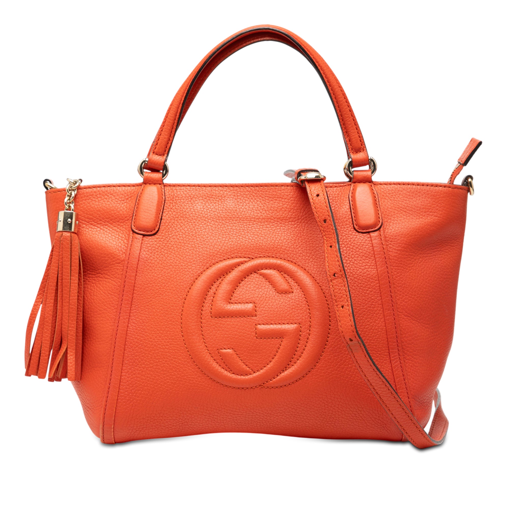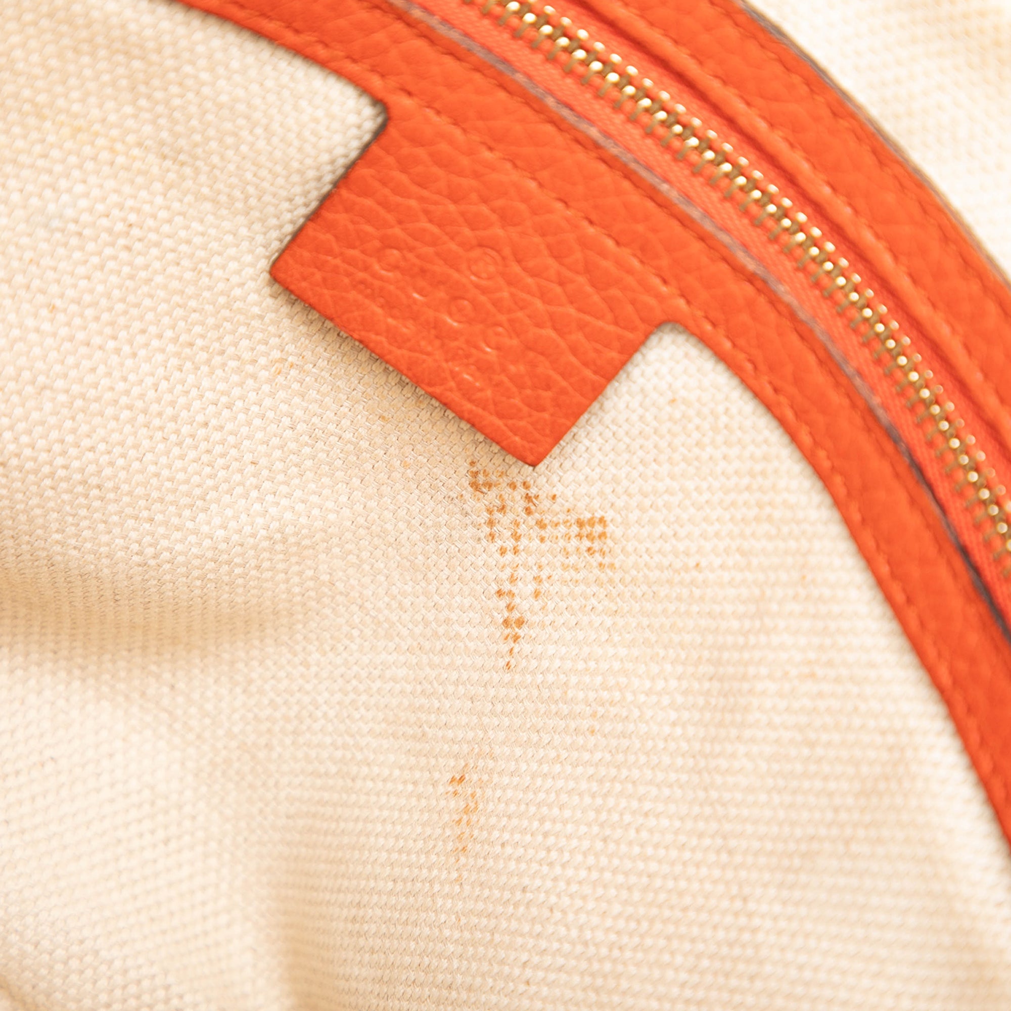 Please note this is a pre-owned item that may display signs of wear consistent with the condition listed above and shown in photos. Designer Revival guarantees this is an authentic Orange Gucci Small Leather Soho Cellarius Satchel or 100% of your money back. Learn more about our authentication process.