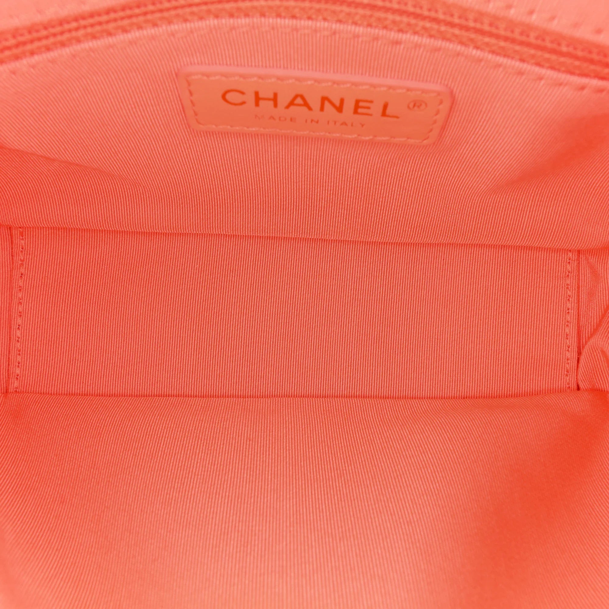 Product Details: Pink Chanel Lambskin Giant Crystal CC Camera Bag. This crossbody bag features a lambskin leather body with crystal embellishments, a leather-woven chain strap with leather shoulder guard, a top zip closure, and an interior zip pocket. 5.1" L x 7.3" W x 2.2" D. Serial number 30778279.