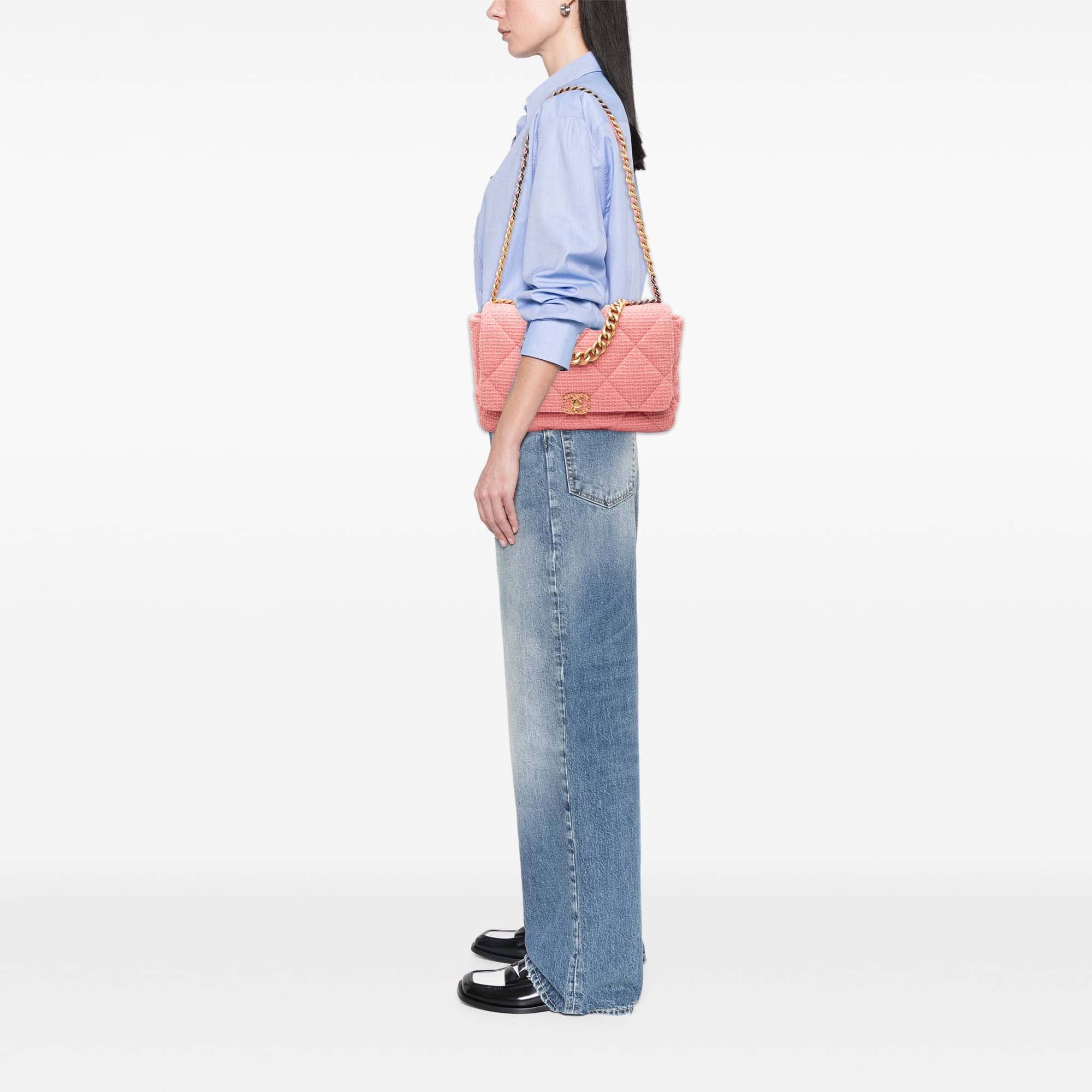 Pink Chanel Maxi Tweed 19 Flap Satchel