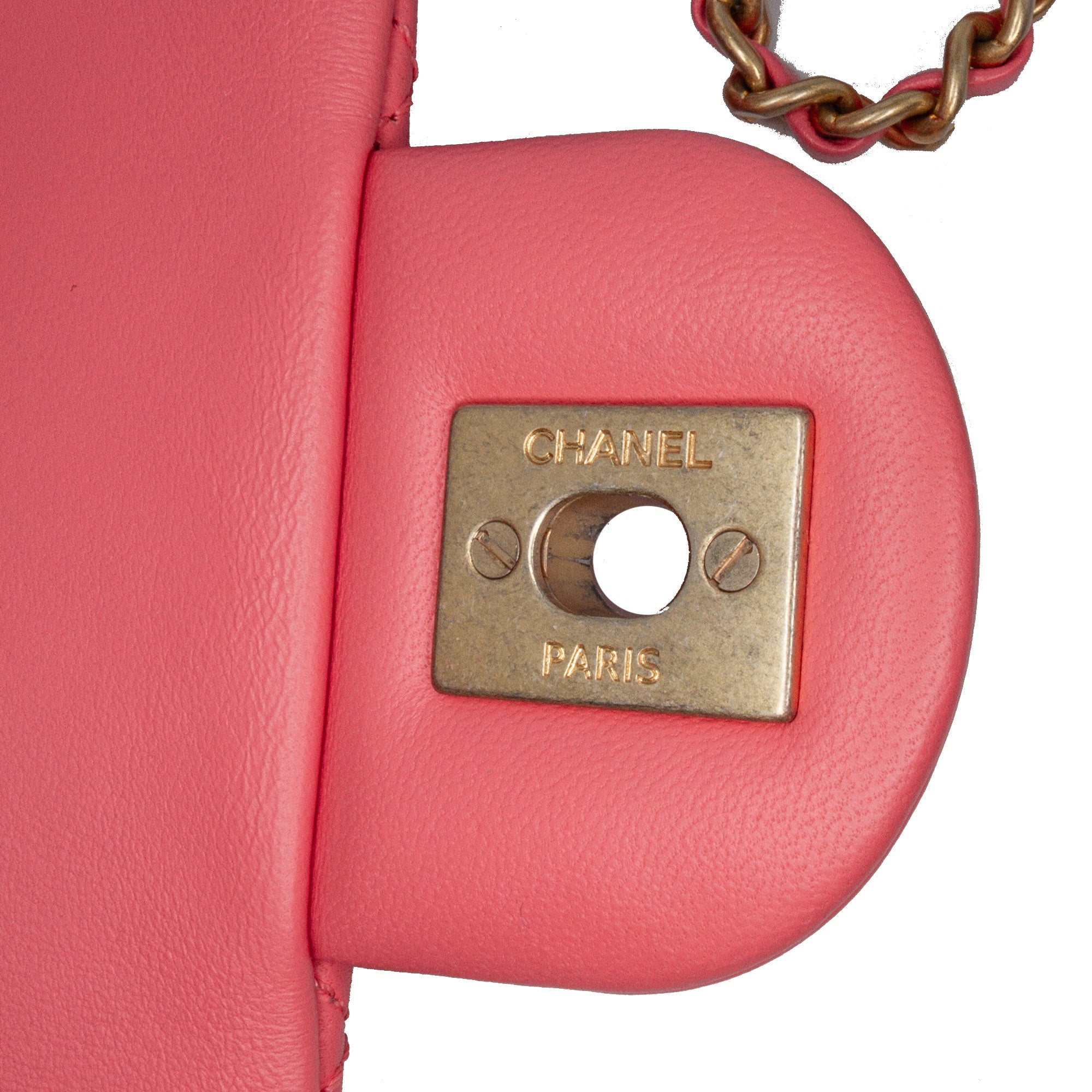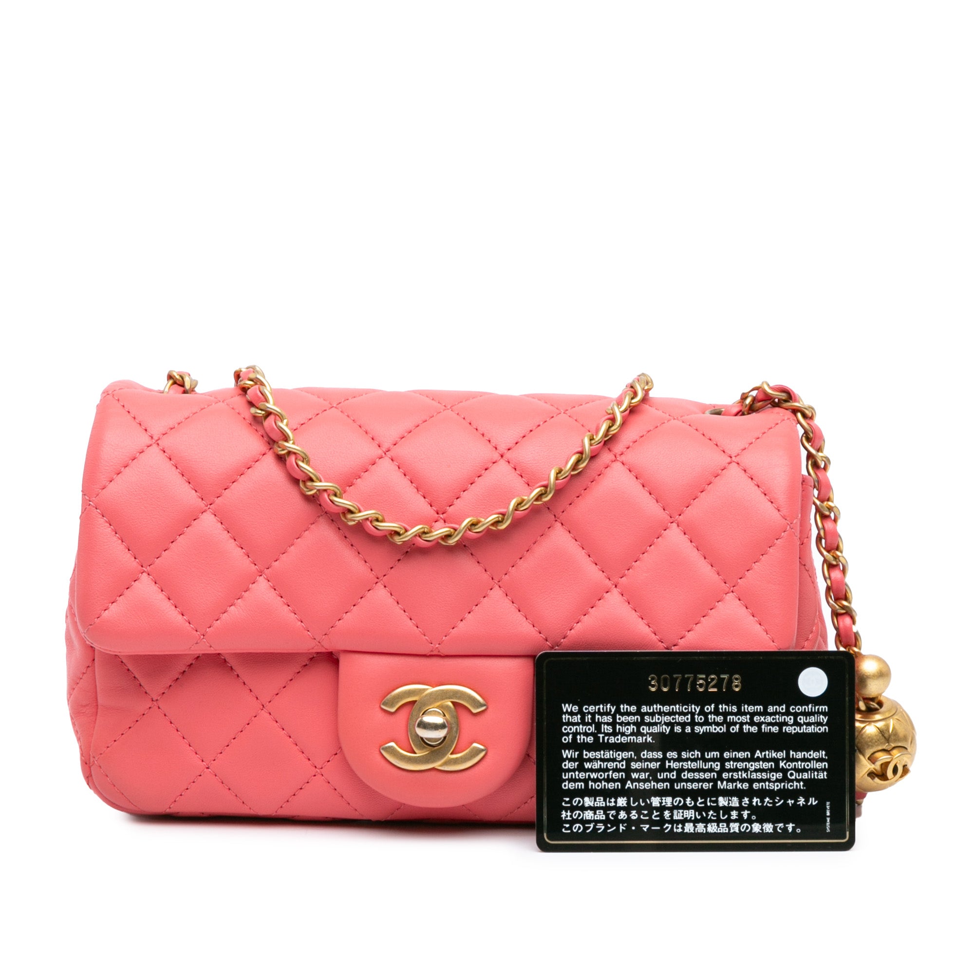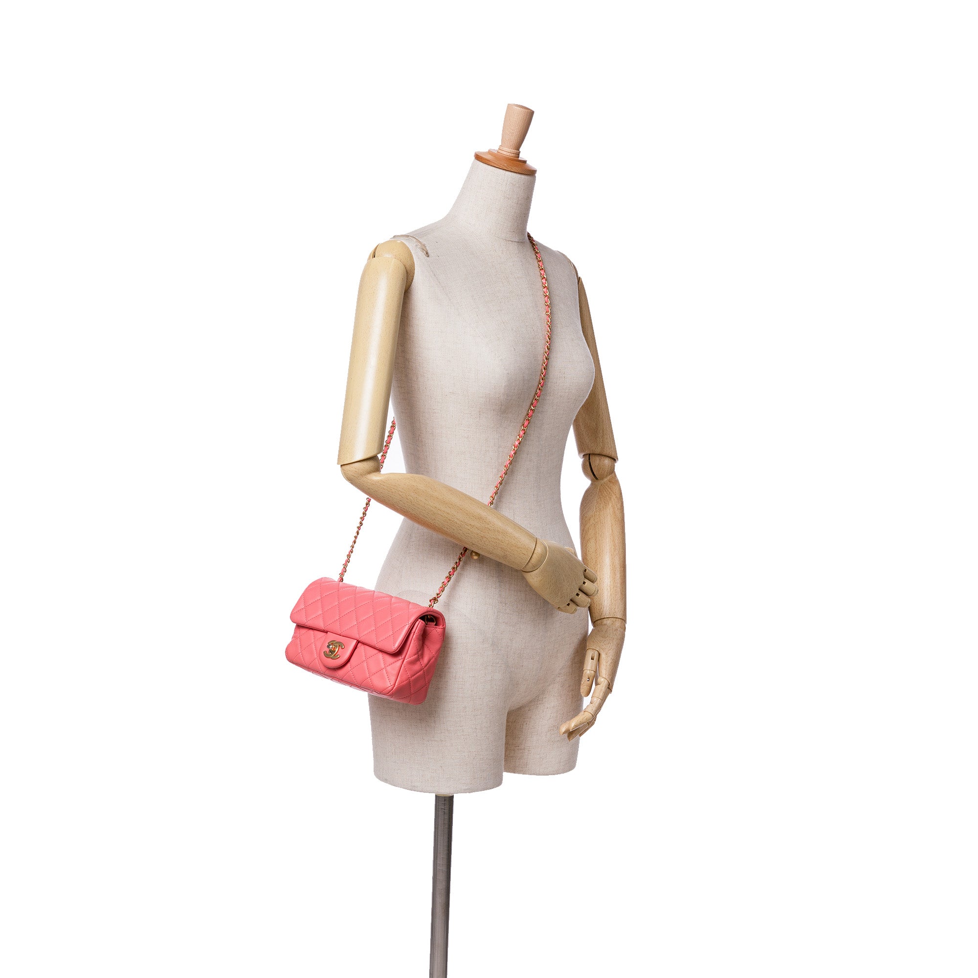 Pink Chanel Mini Rectangular Classic Lambskin Pearl Crush Single Flap Crossbody Bag