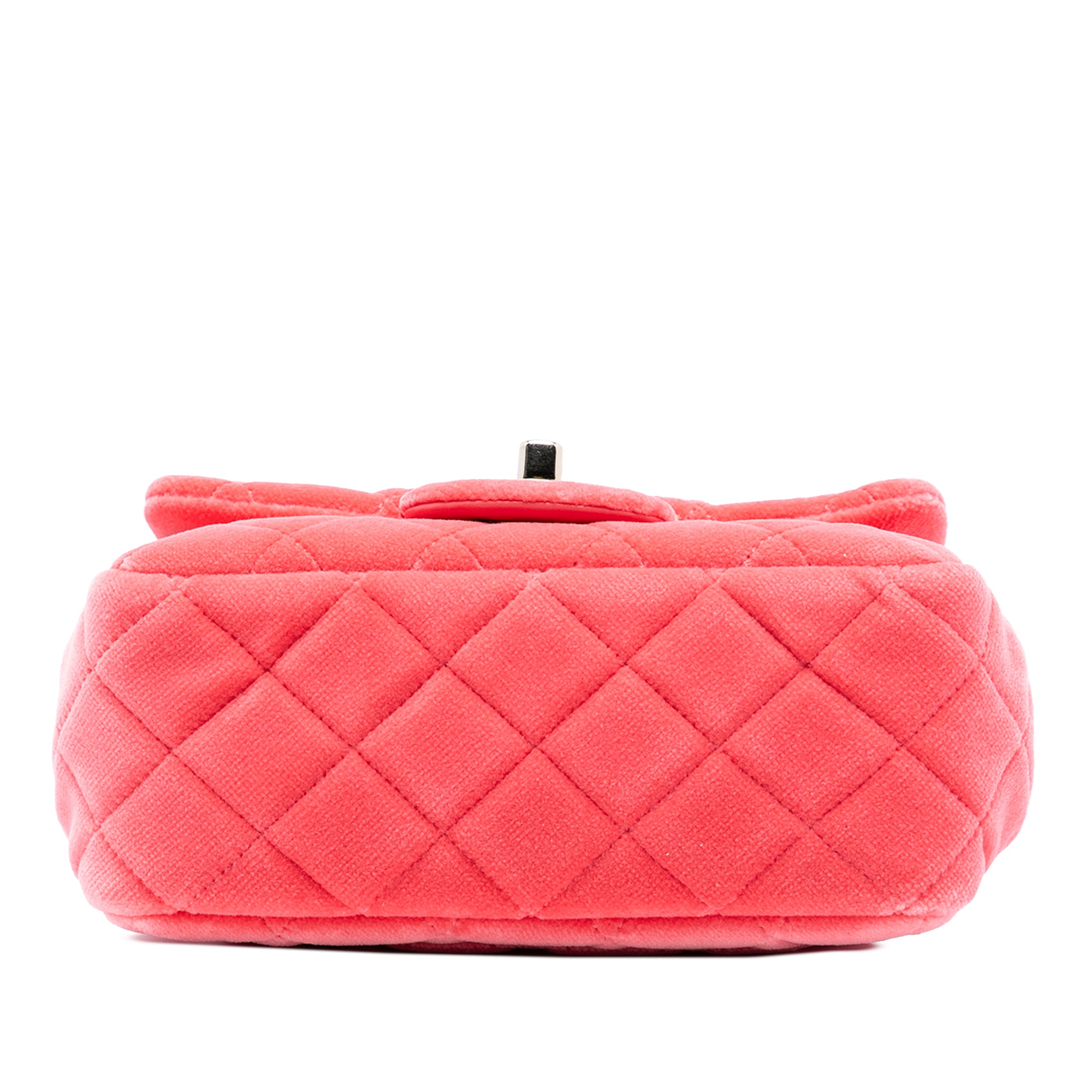 Pink Chanel Mini Square Classic Velvet Pearl Crush Single Flap Crossbody Bag