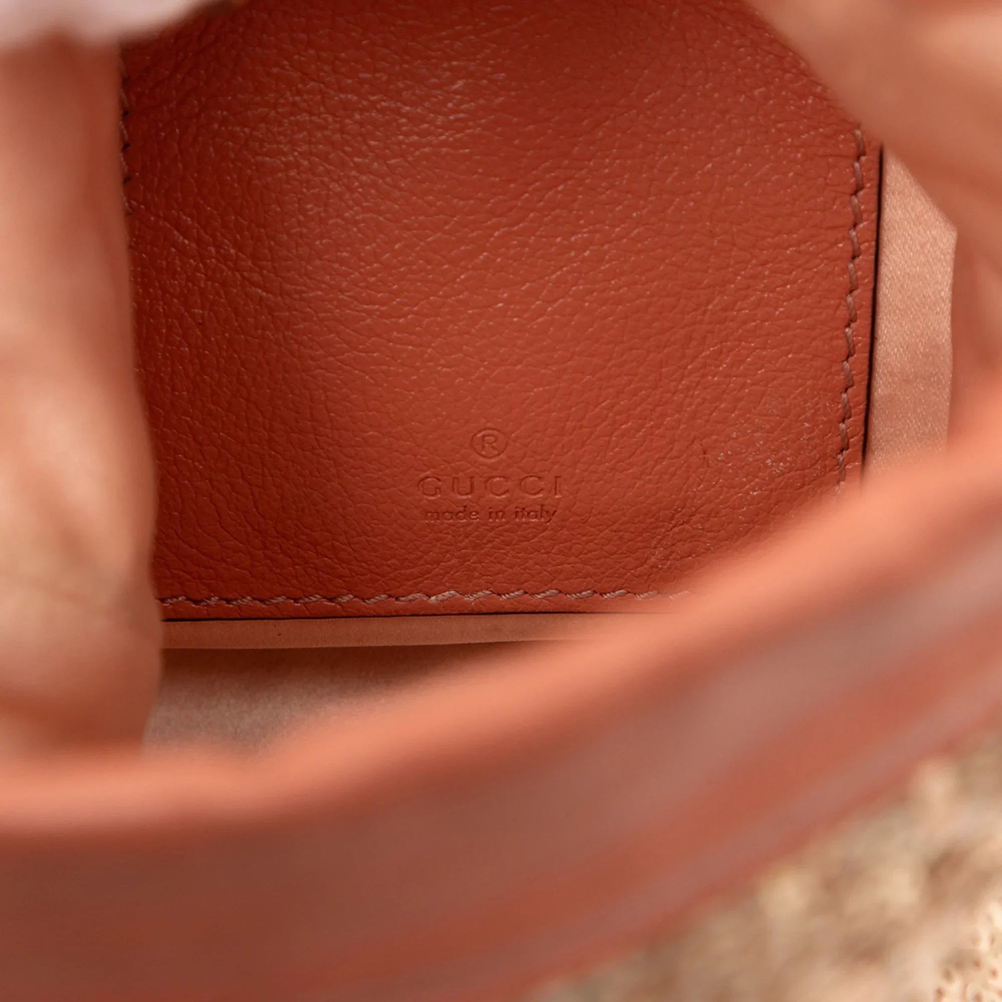 Please note this is a pre-owned item that may display signs of wear consistent with the condition listed above and shown in photos. Designer Revival guarantees this is an authentic Pink Gucci Small GG Marmont Sequined Diagonal Matelasse Leather Bucket Bag or 100% of your money back. Learn more about our authentication process.