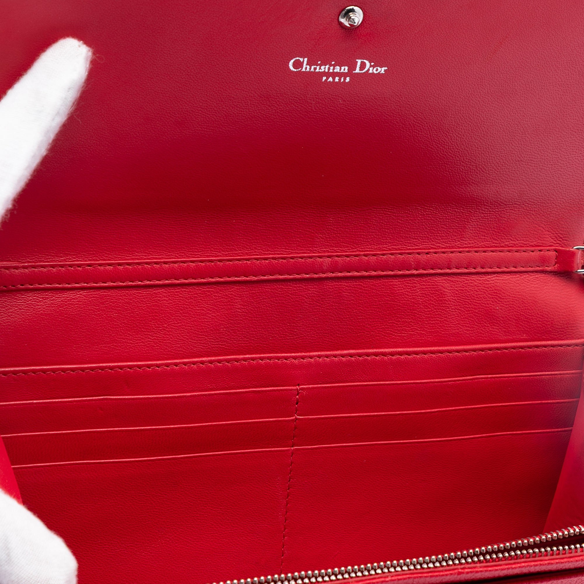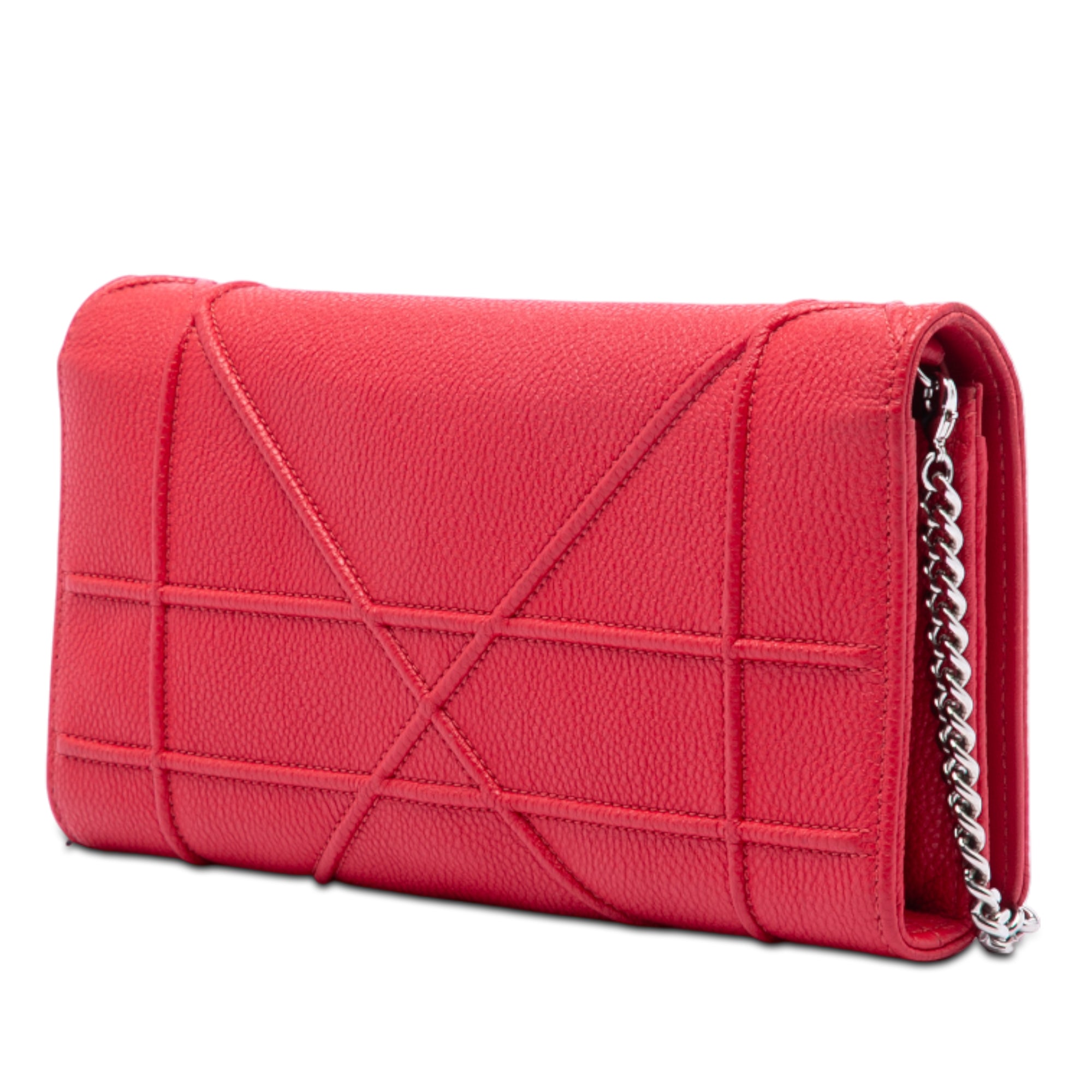 Red Dior Grained Calfskin Diorama Croisiere Wallet on Chain Crossbody Bag