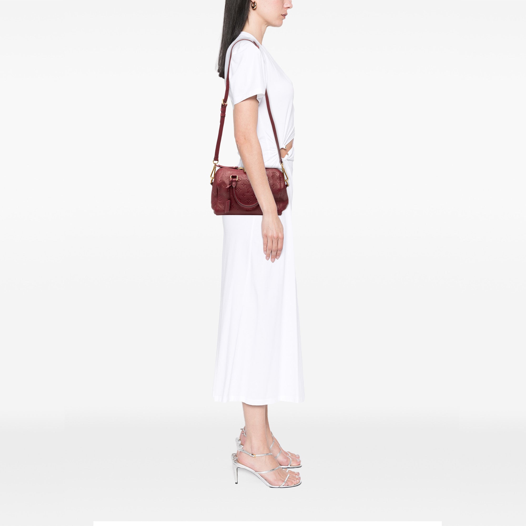 Product Details: Red Louis Vuitton Monogram Empreinte Speedy Bandouliere 25 Satchel. The Speedy Bandouliere 25 features a monogram empreinte leather body, a clochette, rolled leather top handles, a detachable and adjustable flat leather shoulder strap, a top zip closure, and an interior zip pocket. 7.1" L x 10.2" W x 5.9" D, 3" drop. Serial number SP1133.