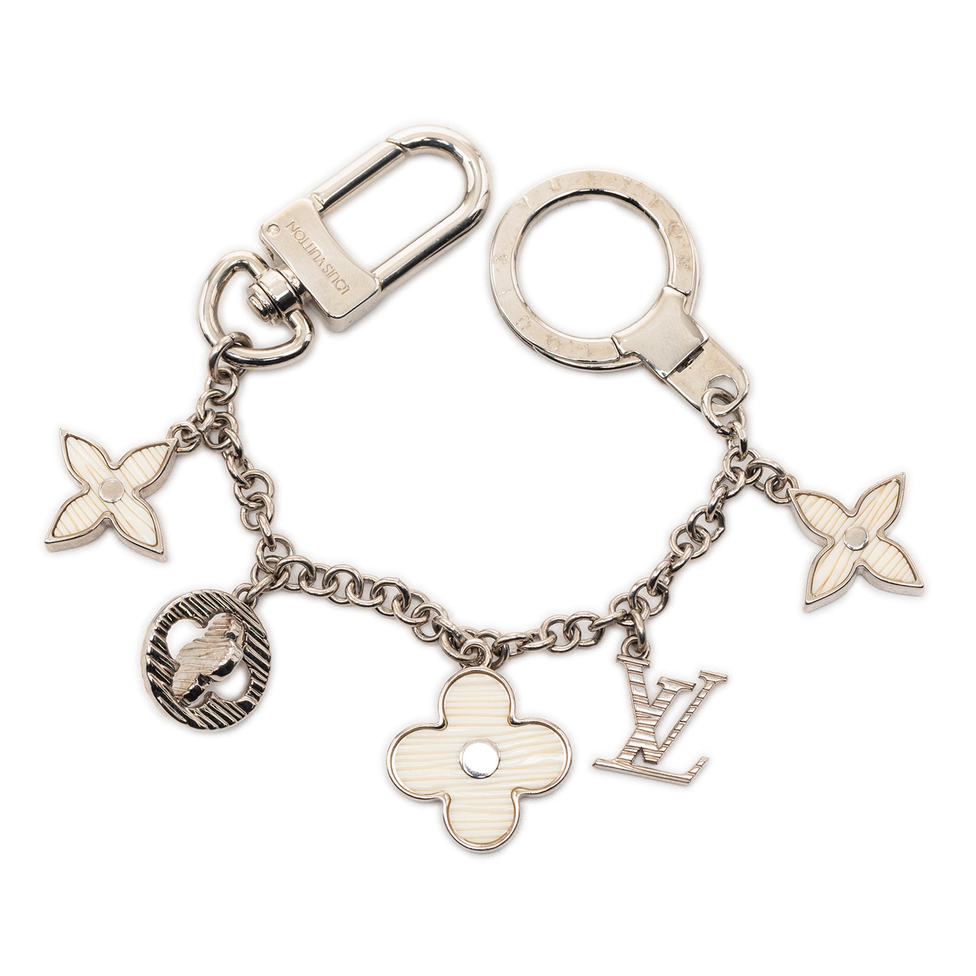 Silver Louis Vuitton Plated Fleur D Epi Bag Charm Key Chain