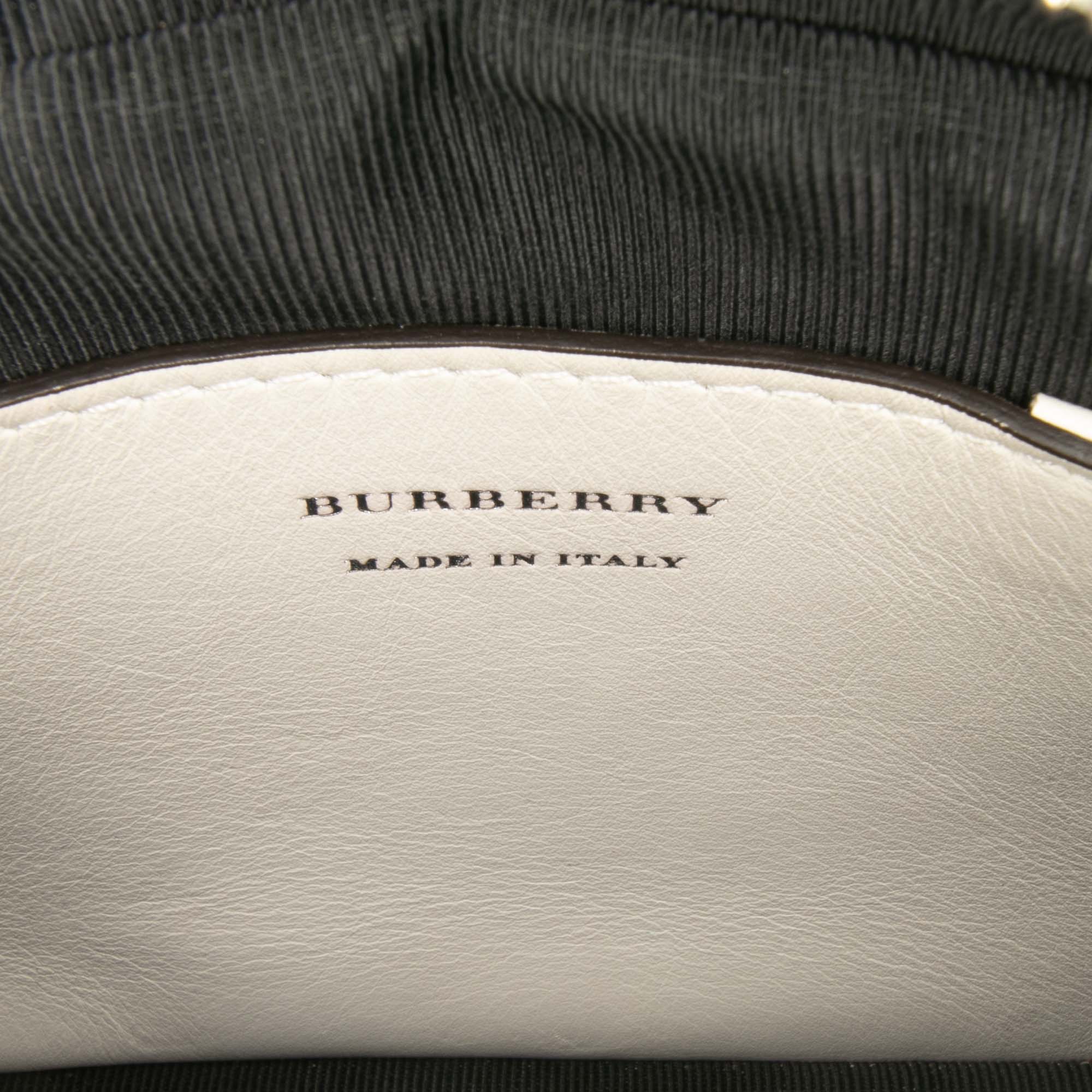 Product Details: Brown Burberry Haymarket Check Canvas 1983 Link Crossbody. This crossbody bag features a haymarket check canvas body with leather trim, a leather and chain shoulder strap, a top zip closure, an exterior front zip pocket, and an interior slip pocket. 5.5" L x 7.5" W x 3" D. Serial number CFPCXP1297.