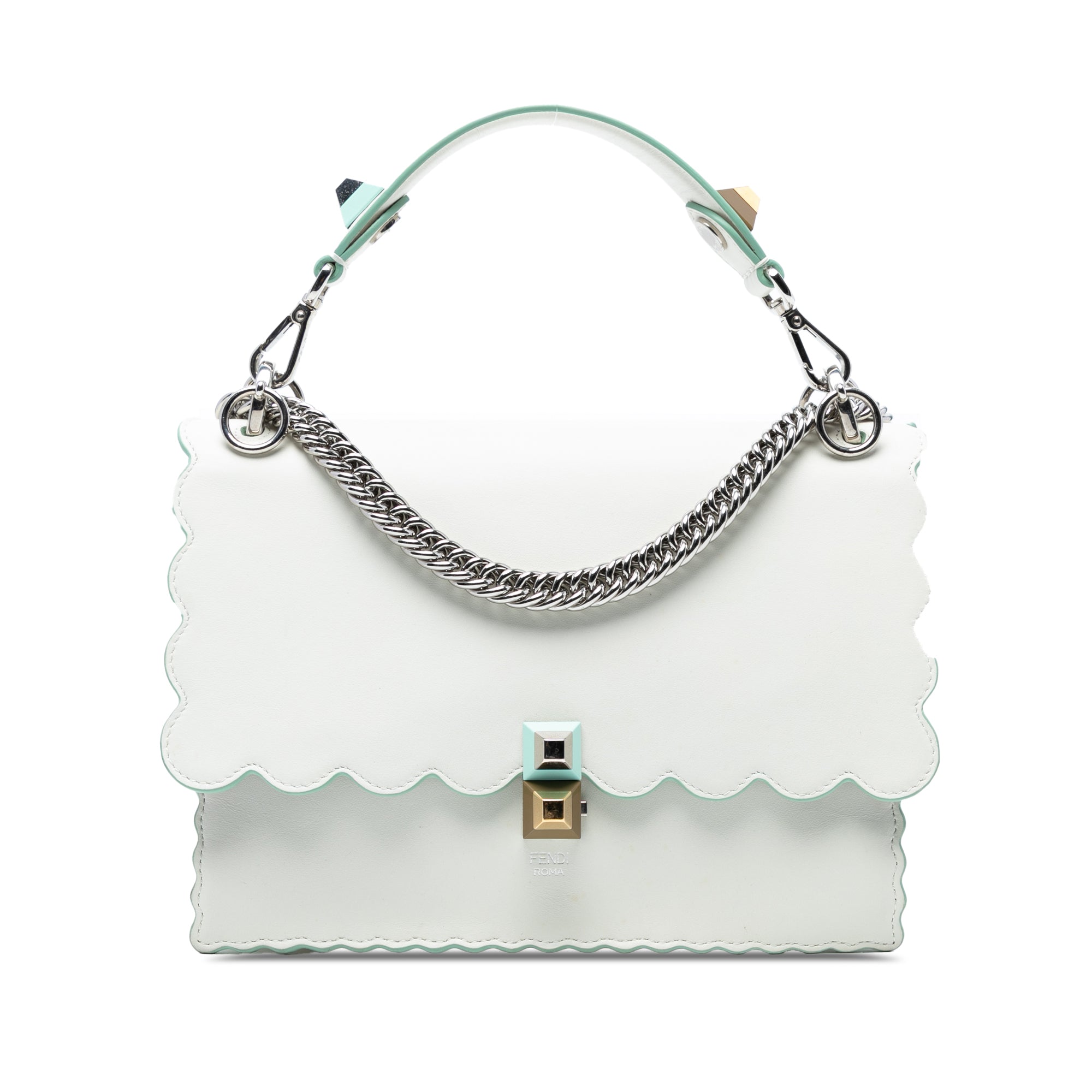 White Fendi Medium Scalloped Leather Studded Kan I Satchel Crossbody Bag