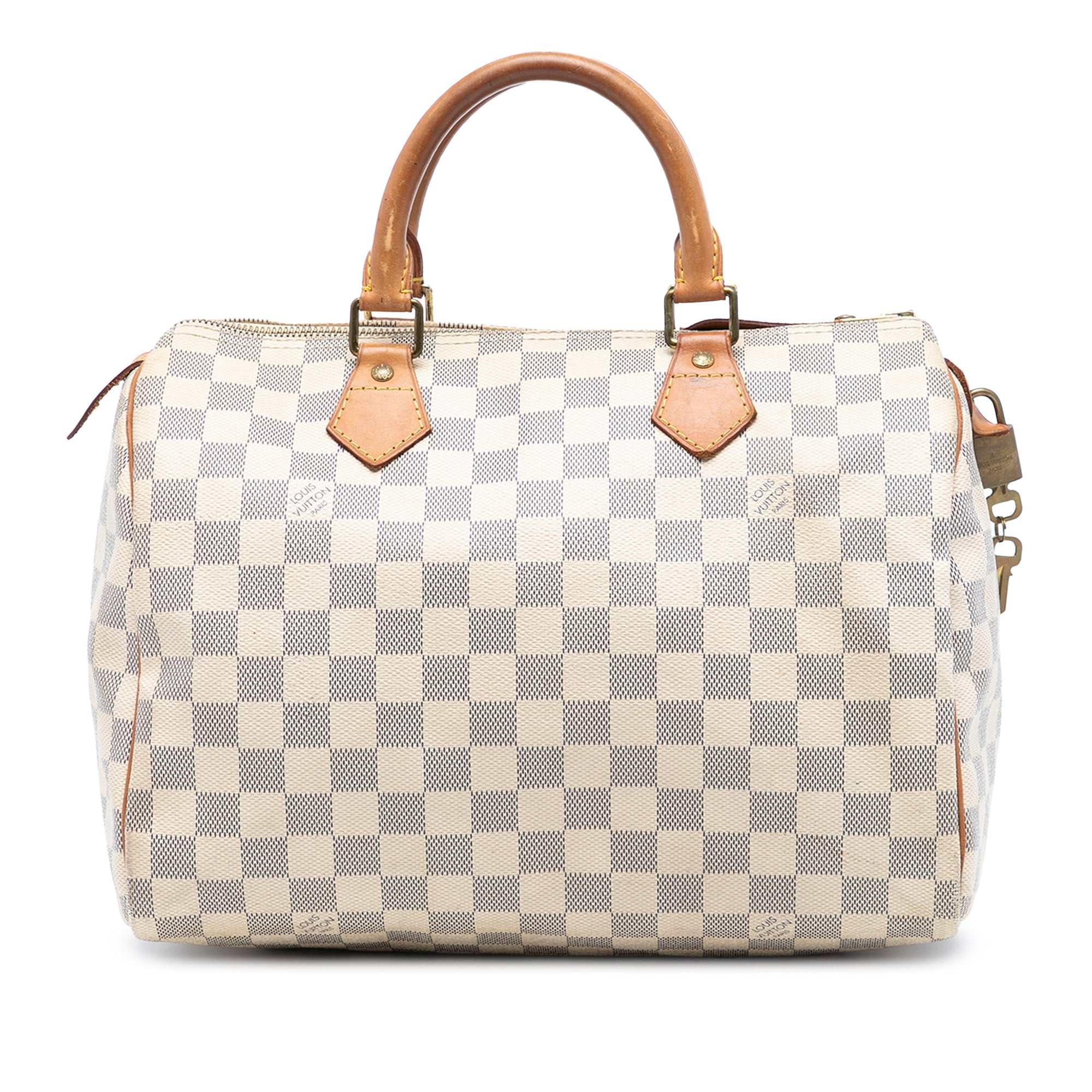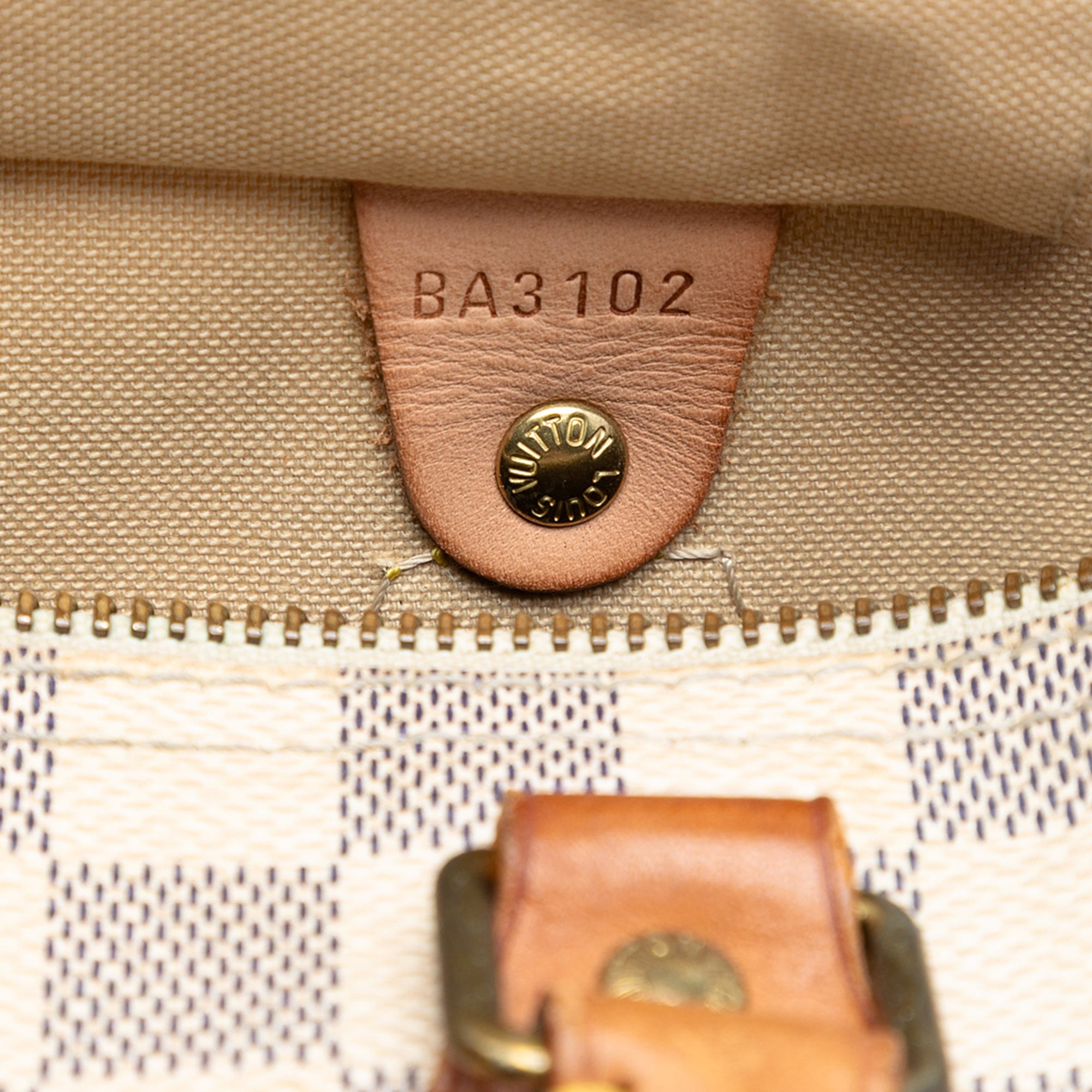 Please note this is a pre-owned item that may display signs of wear consistent with the condition listed above and shown in photos. Designer Revival guarantees this is an authentic White Louis Vuitton Damier Azur Speedy 30 Boston Bag or 100% of your money back. Learn more about our authentication process.